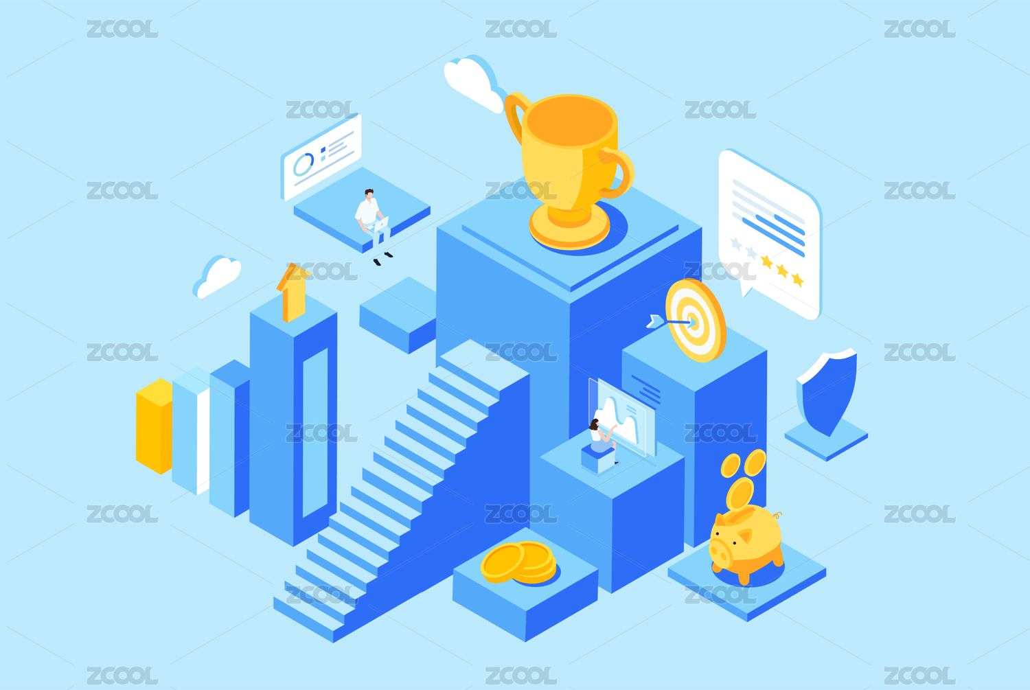 等距業(yè)務商務冠軍插畫