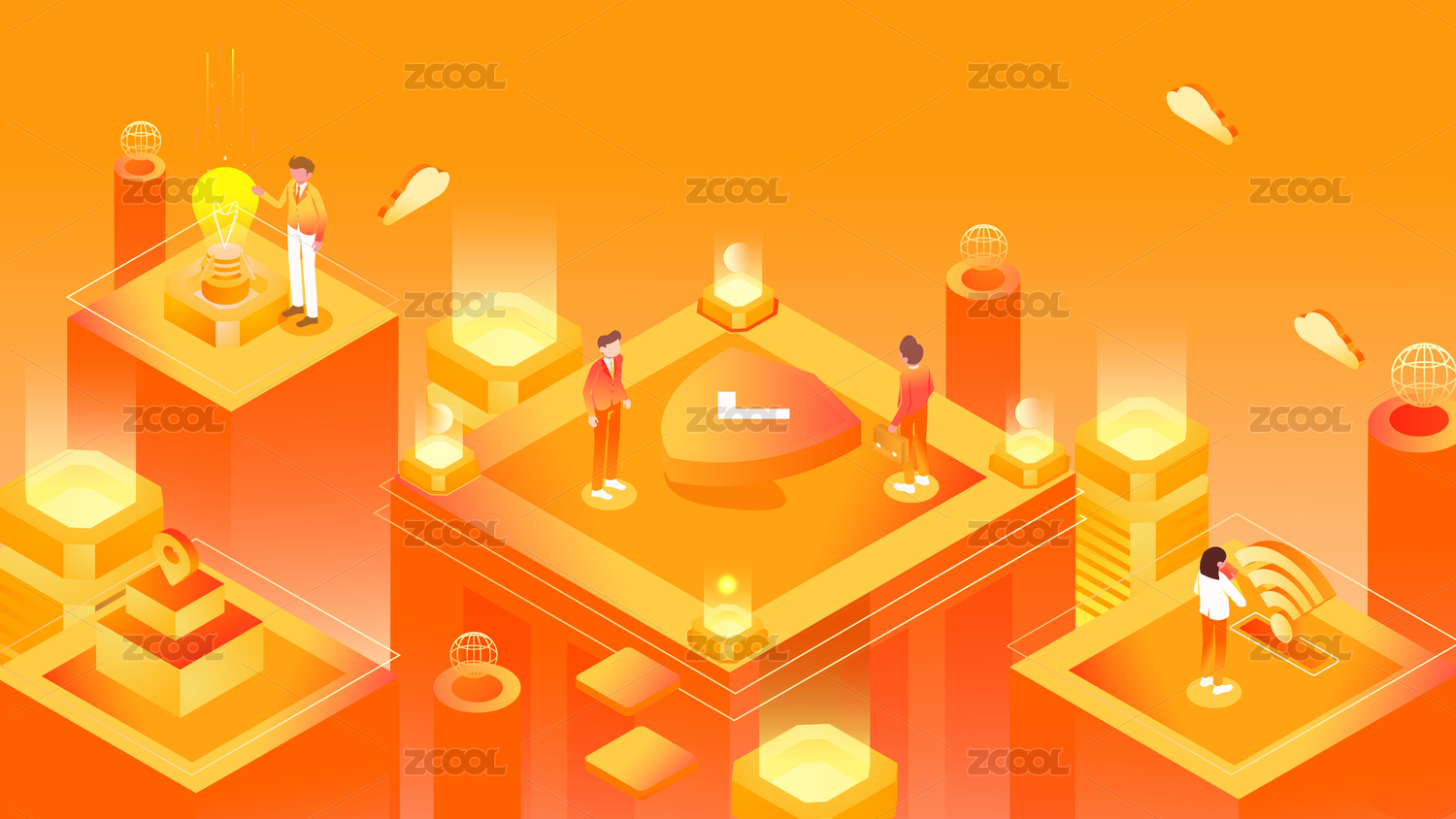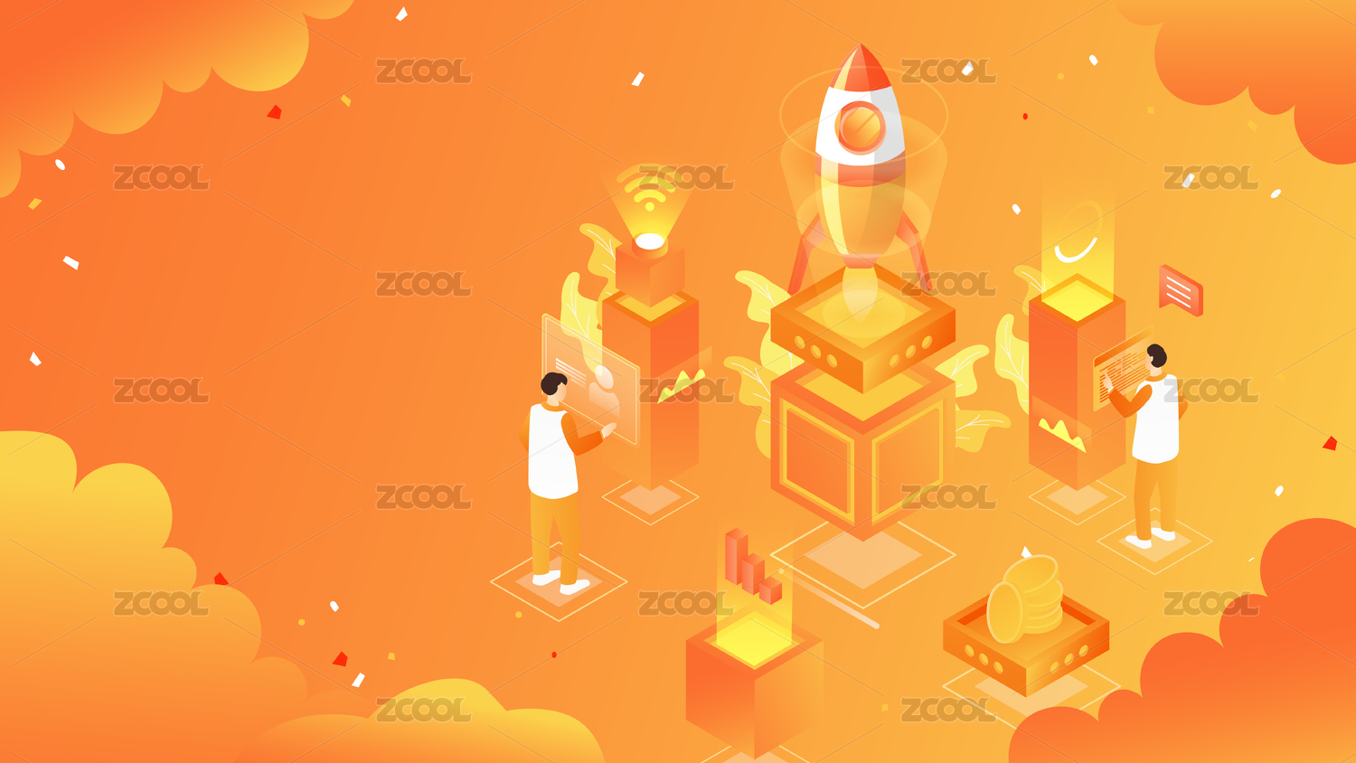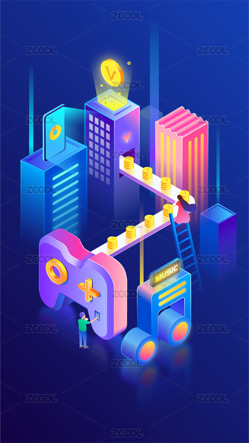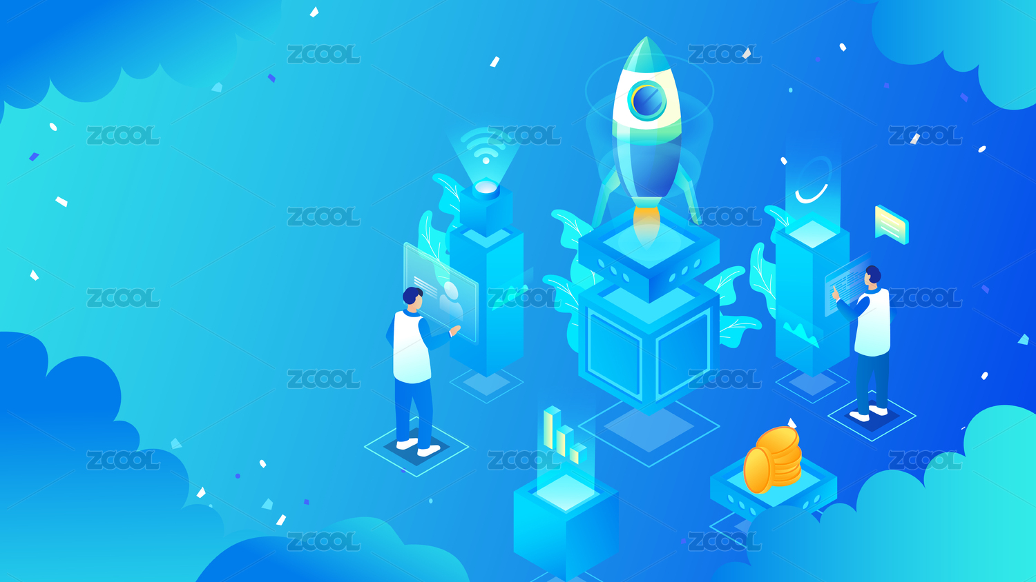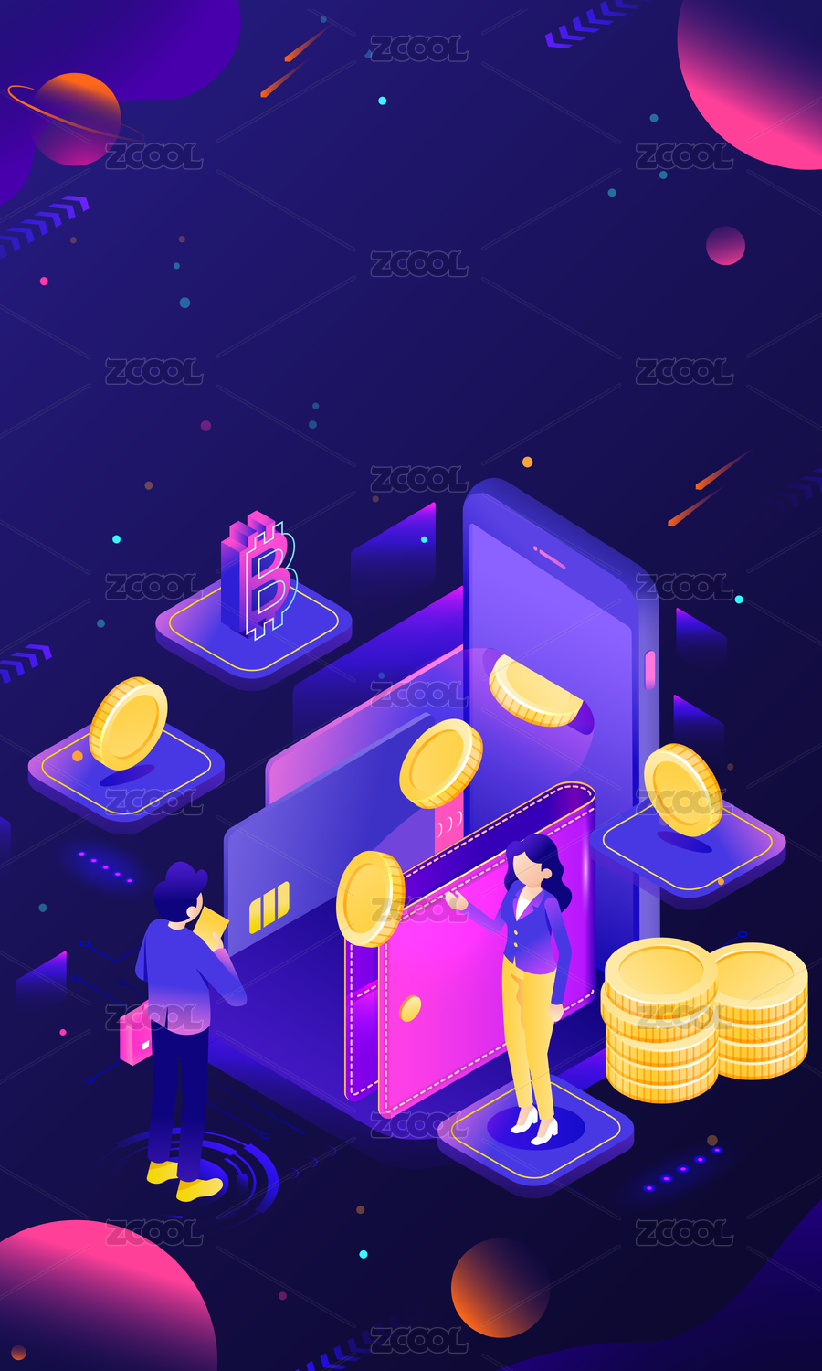 潮流金融科技感2.5D插畫海報