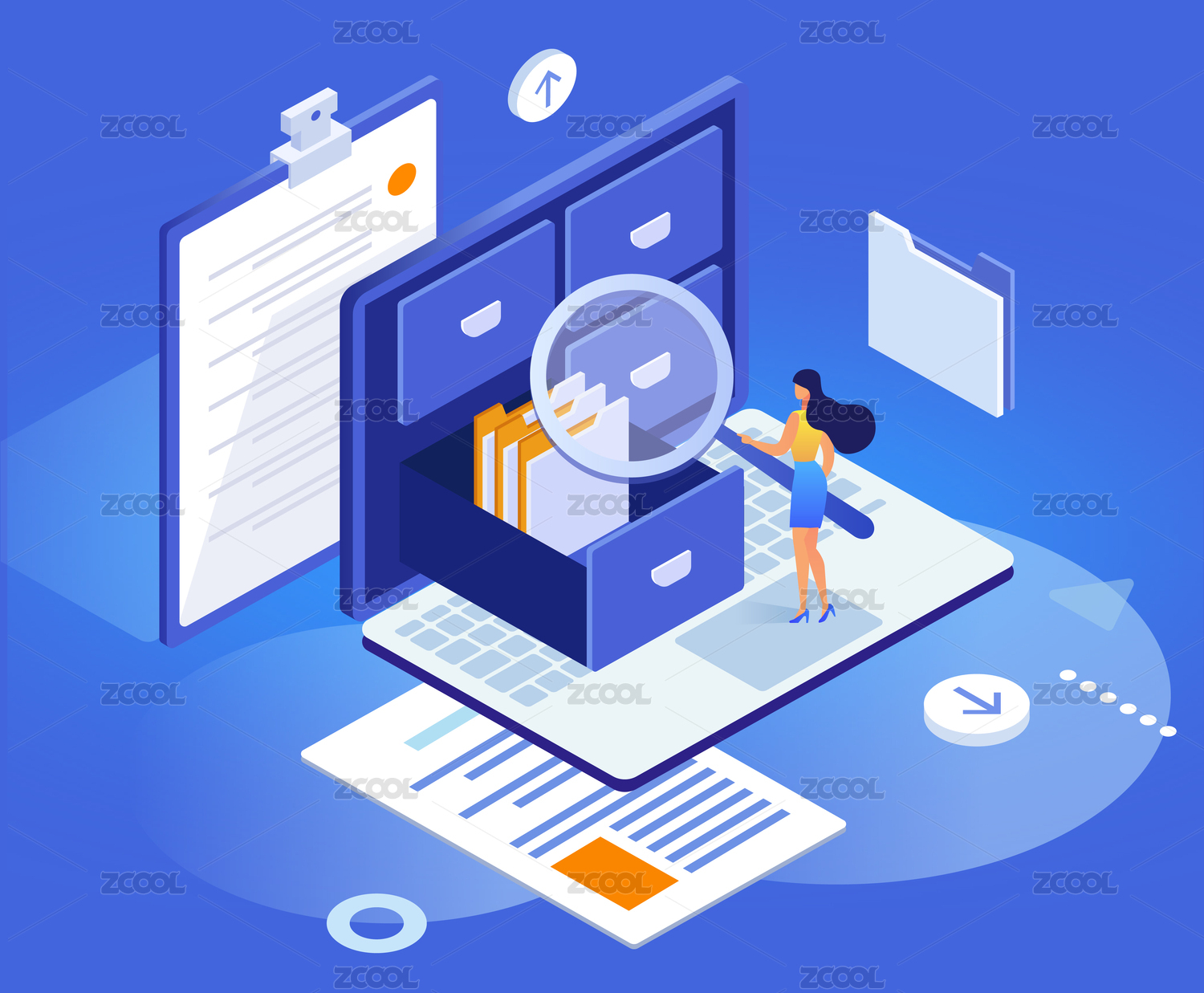 2.5D 商務科技文檔搜索插畫