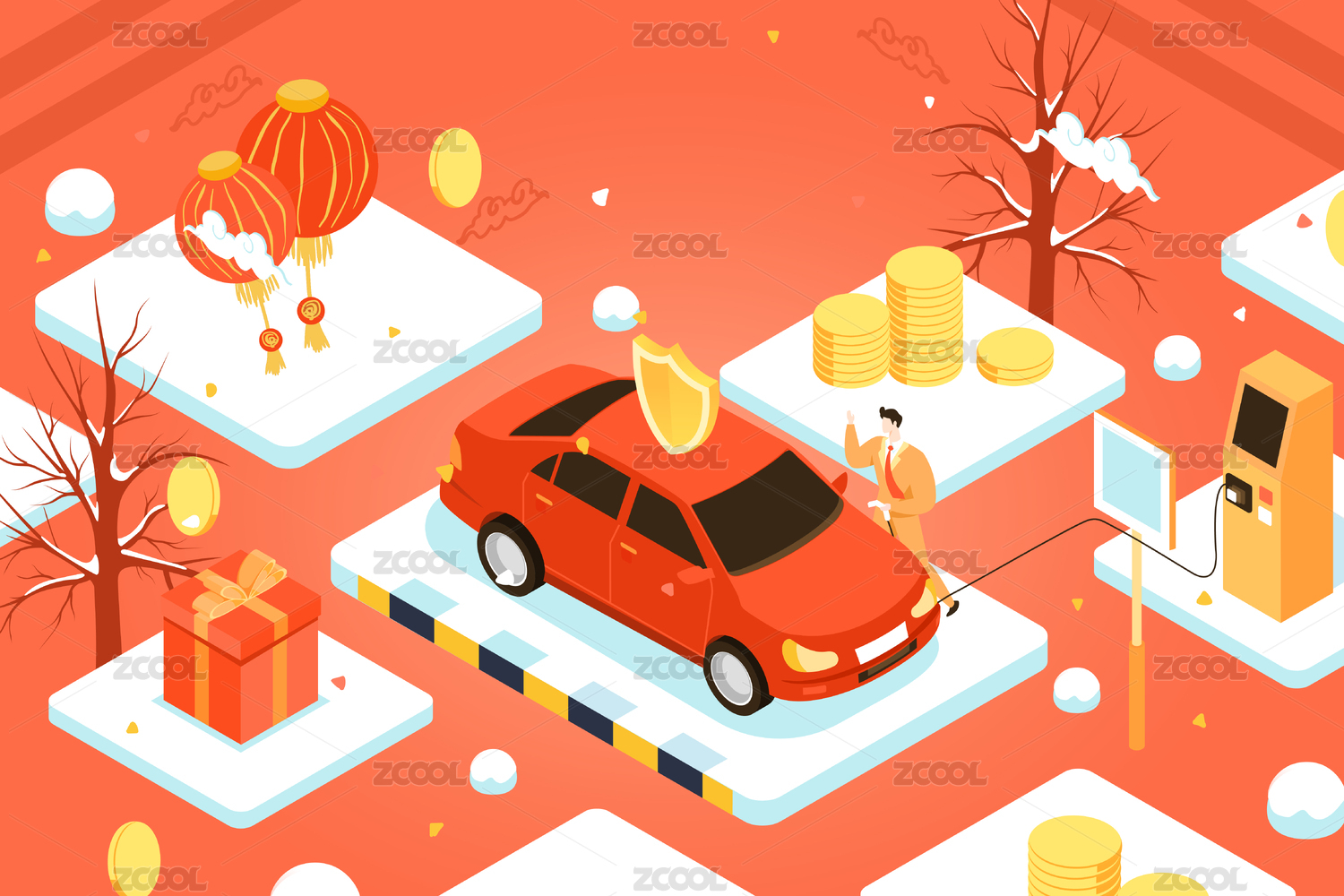2.5D等距汽車金融活動矢量插畫