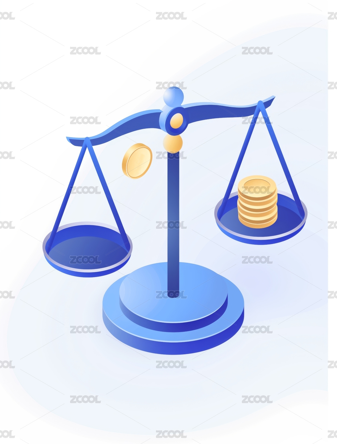天平和金幣2D圖標插畫