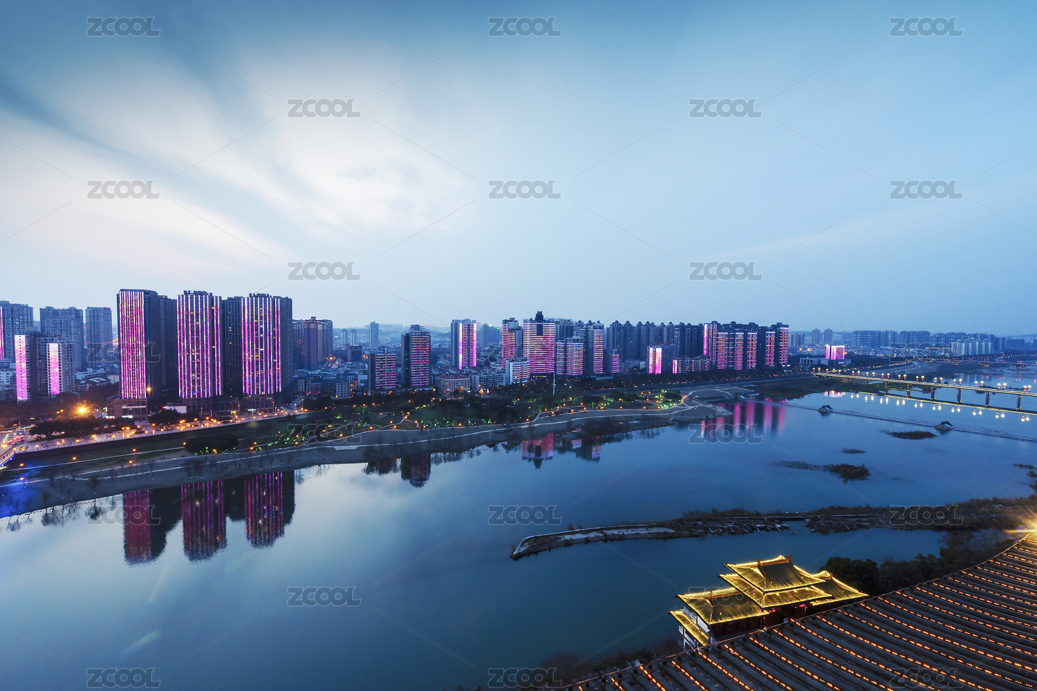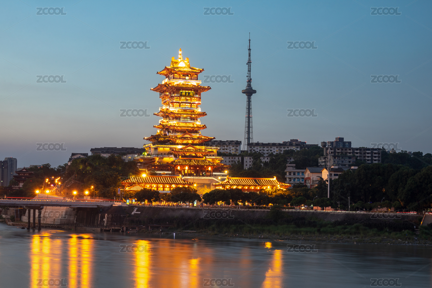 四川省綿陽市越王樓與涪江夜景