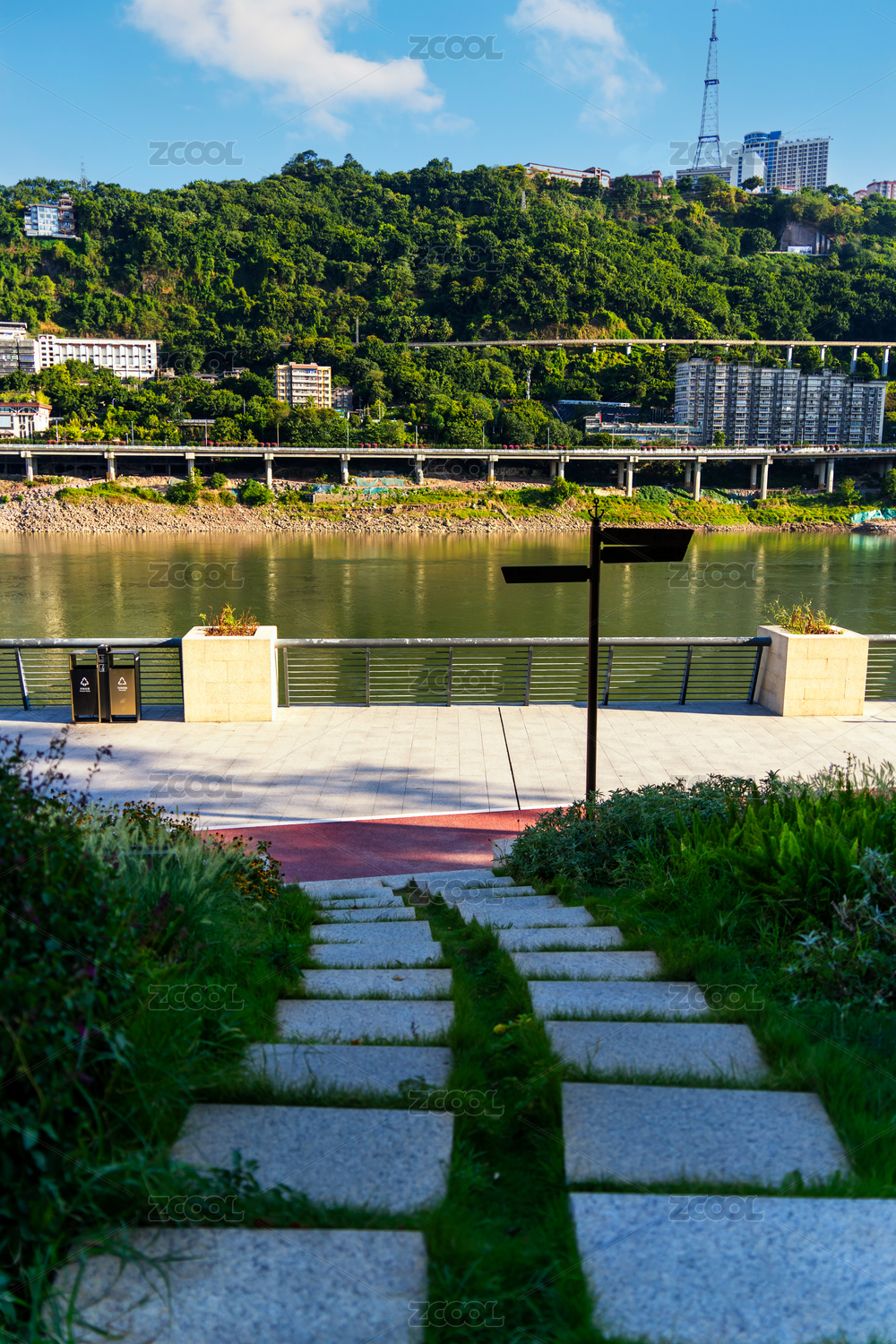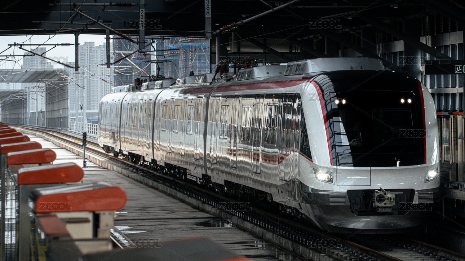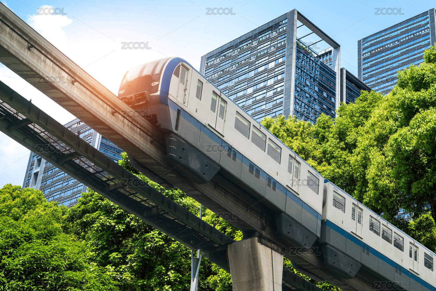 中國重慶:一輛正在山嶺中穿行的輕軌列車