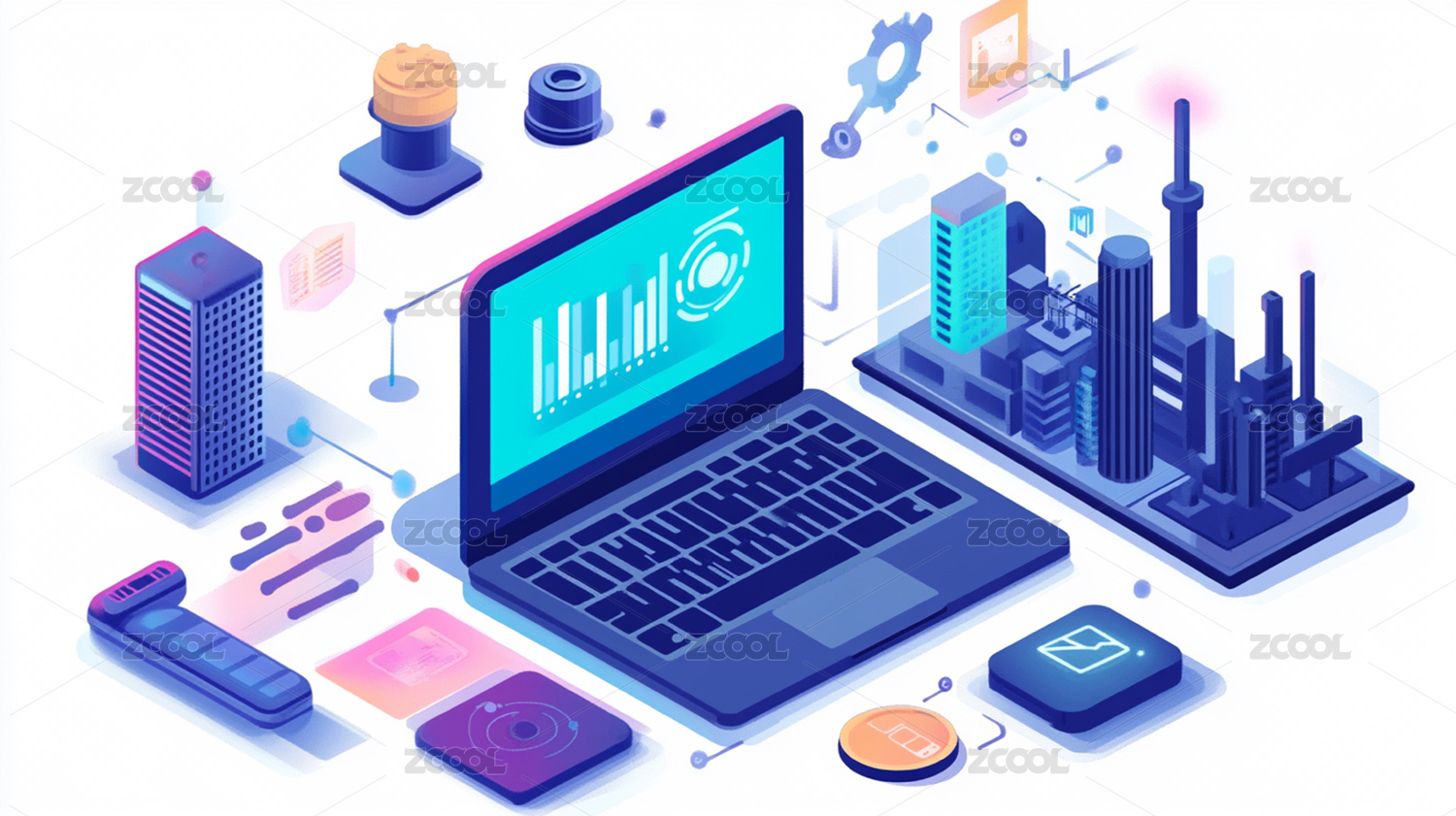 3D風格科技智慧城市插畫