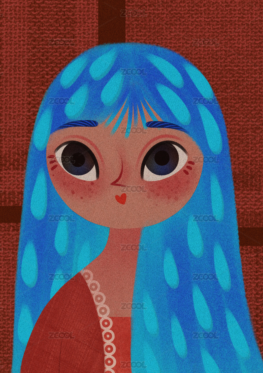 一個藍(lán)色披肩長直發(fā)的女孩