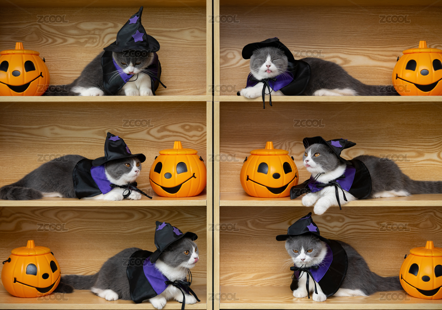 穿上萬圣節(jié)女巫披肩的貓貓