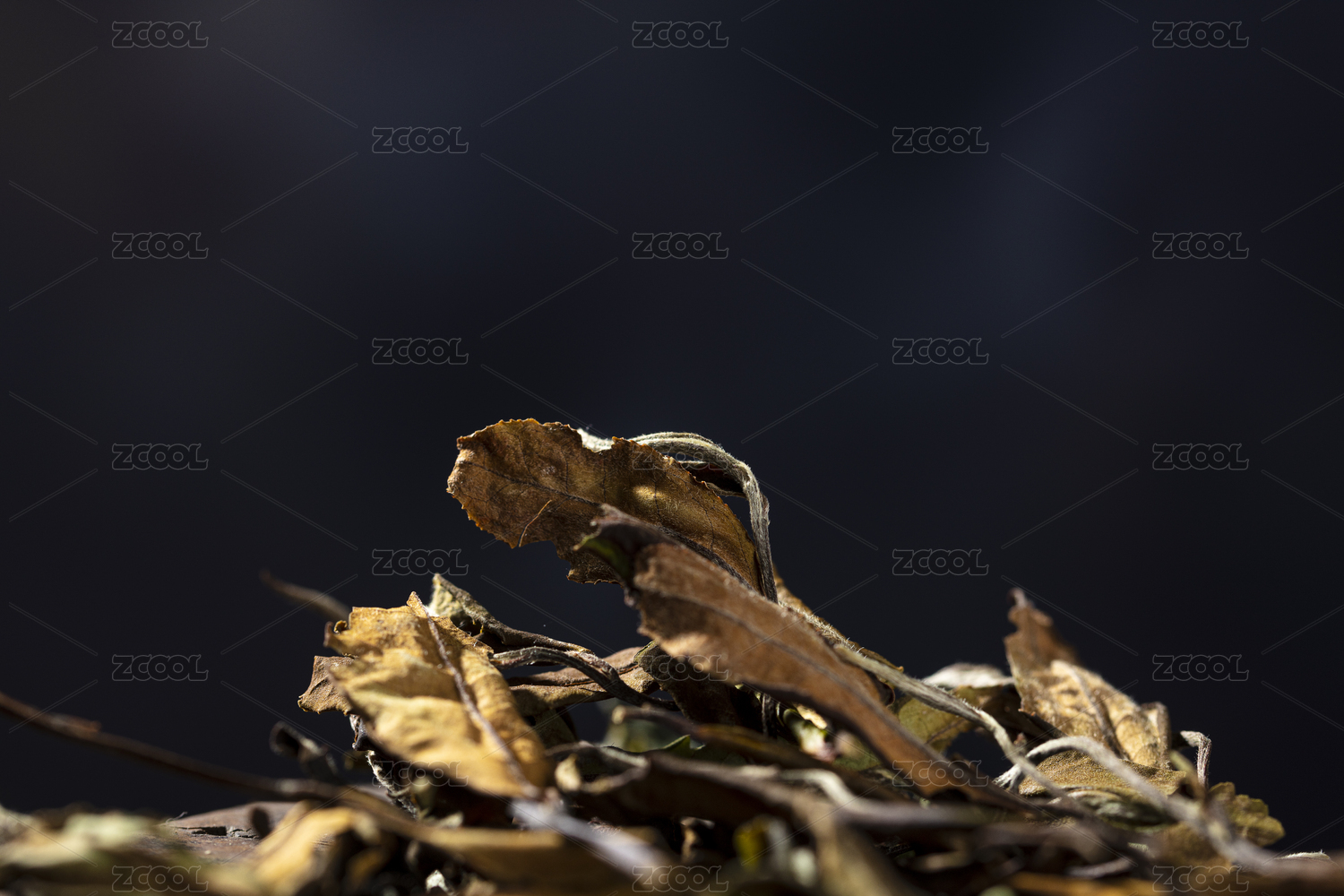 藍色背景中的老白茶壽眉茶葉特寫