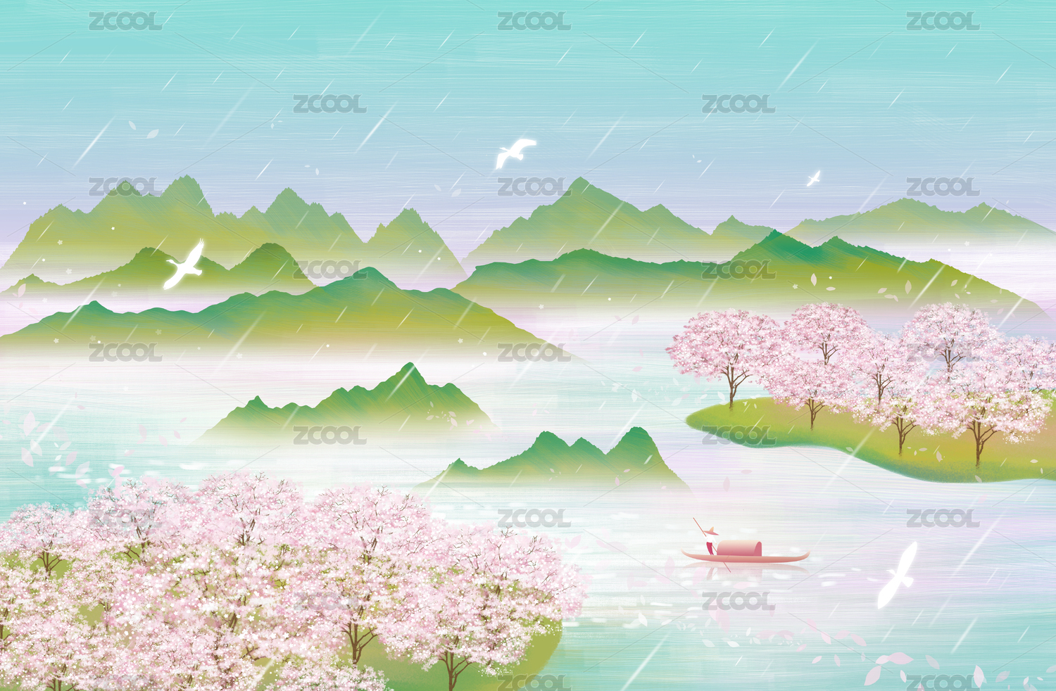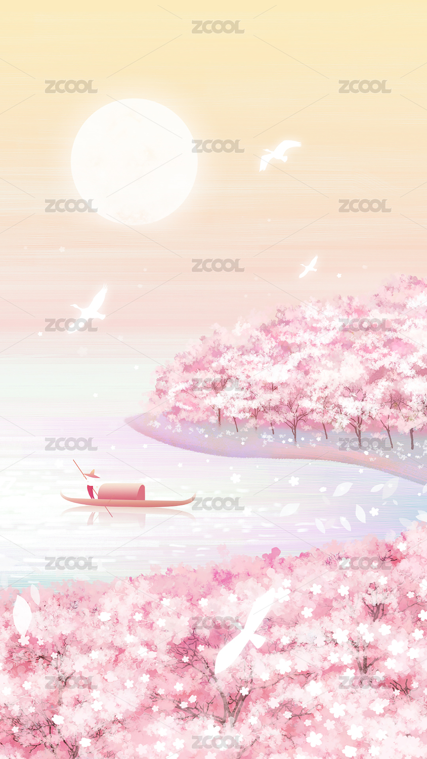 貴州貴安平壩萬畝櫻花盛開美景插畫