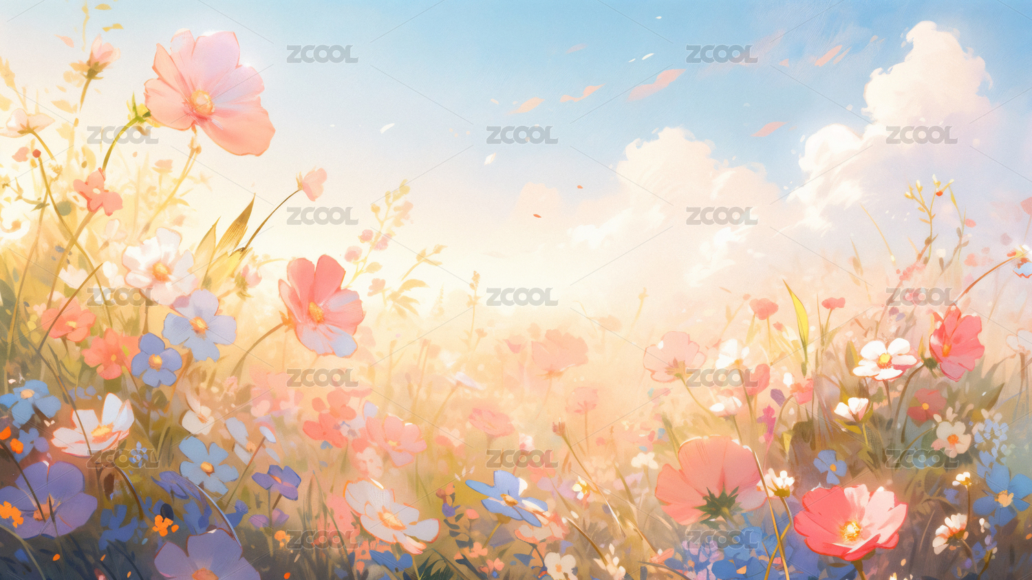 浪漫的夢幻花叢矢量背景圖