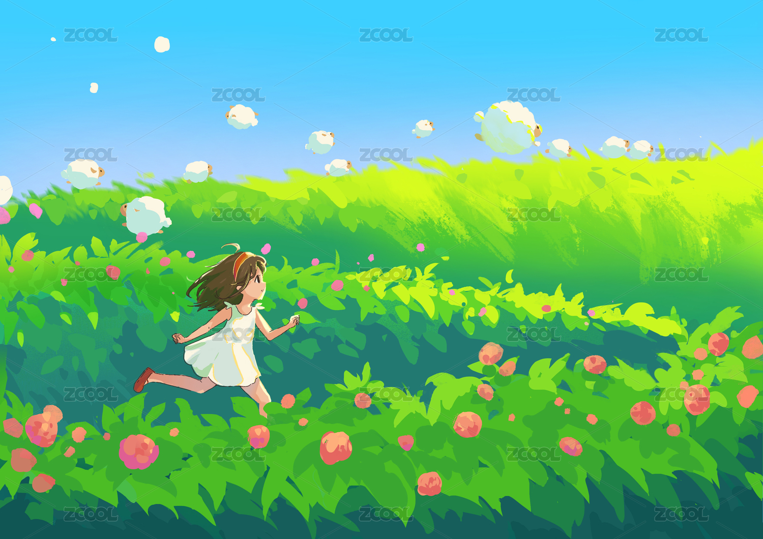 花叢中奔跑