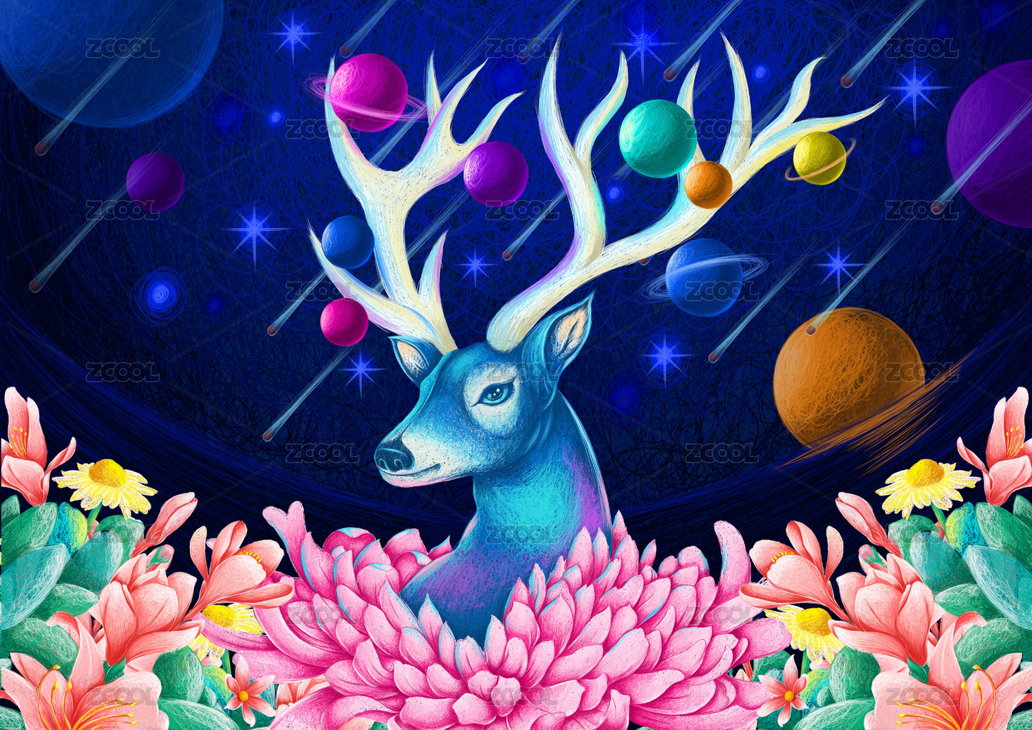花叢中的鹿鹿