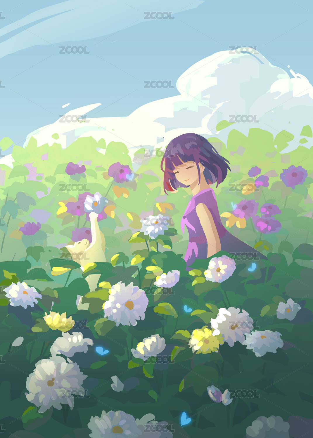 花叢中的少女