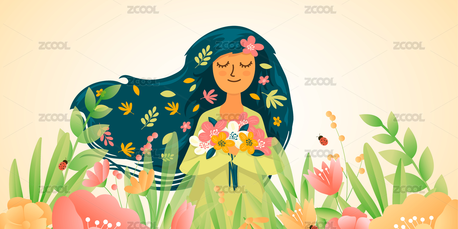 花叢中發(fā)絲飄揚(yáng)的女人