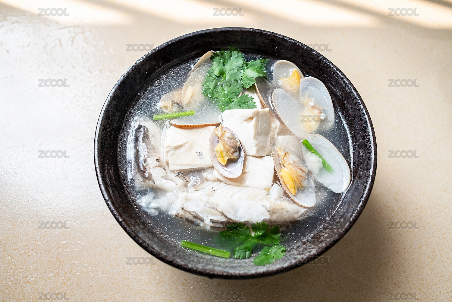 一碗營養(yǎng)美味的海鮮湯龍頭魚花蛤豆腐湯
