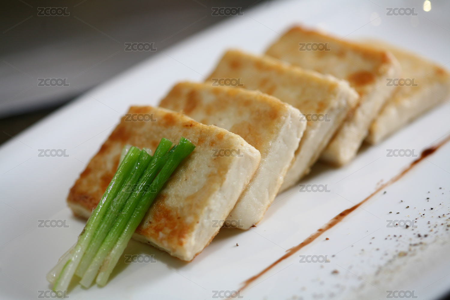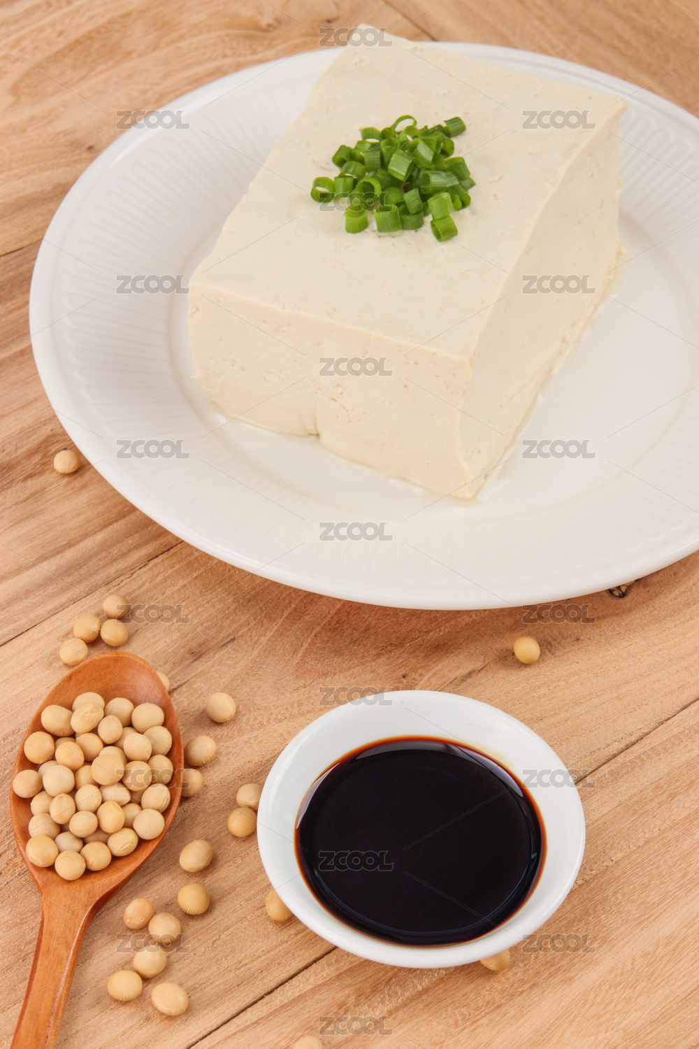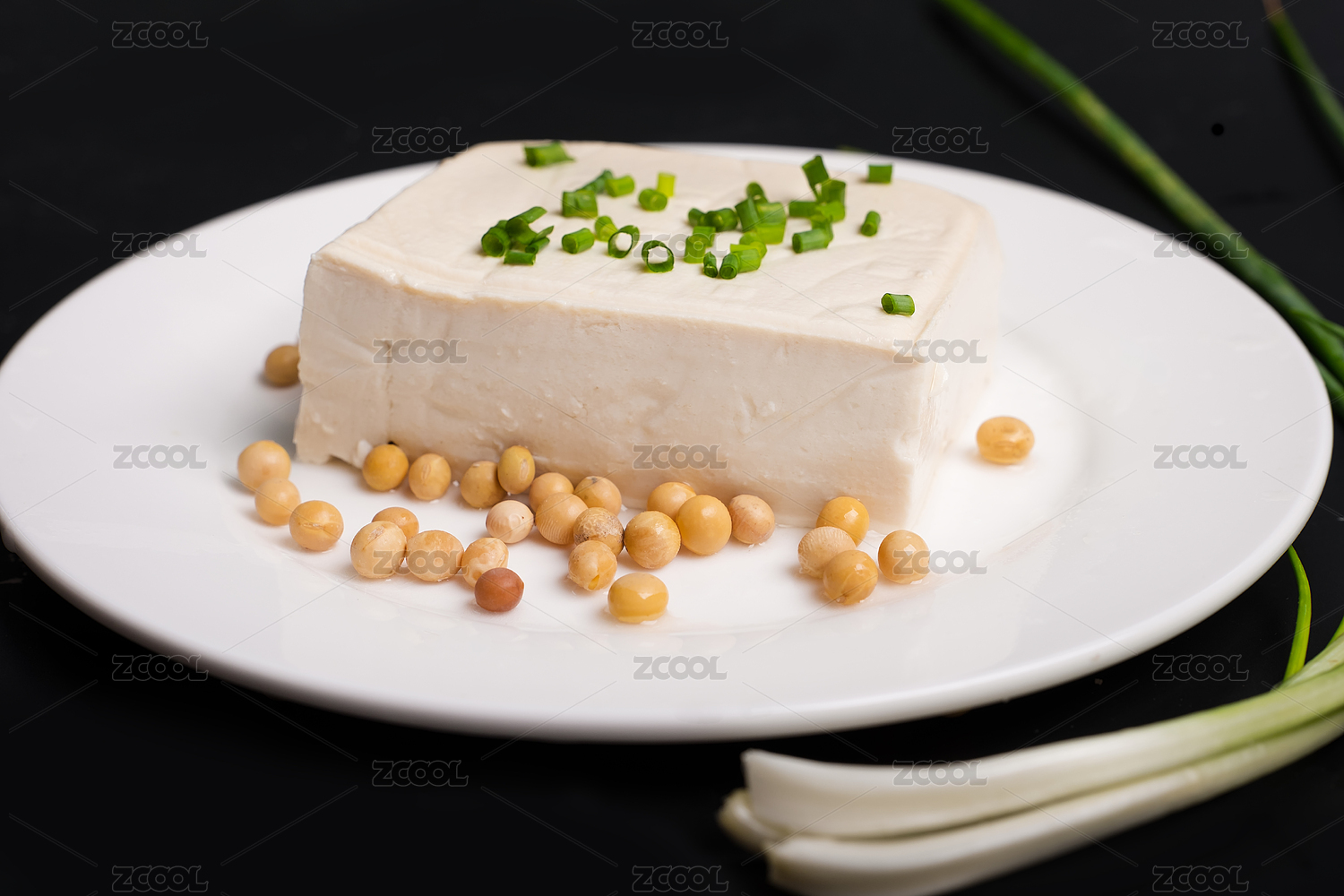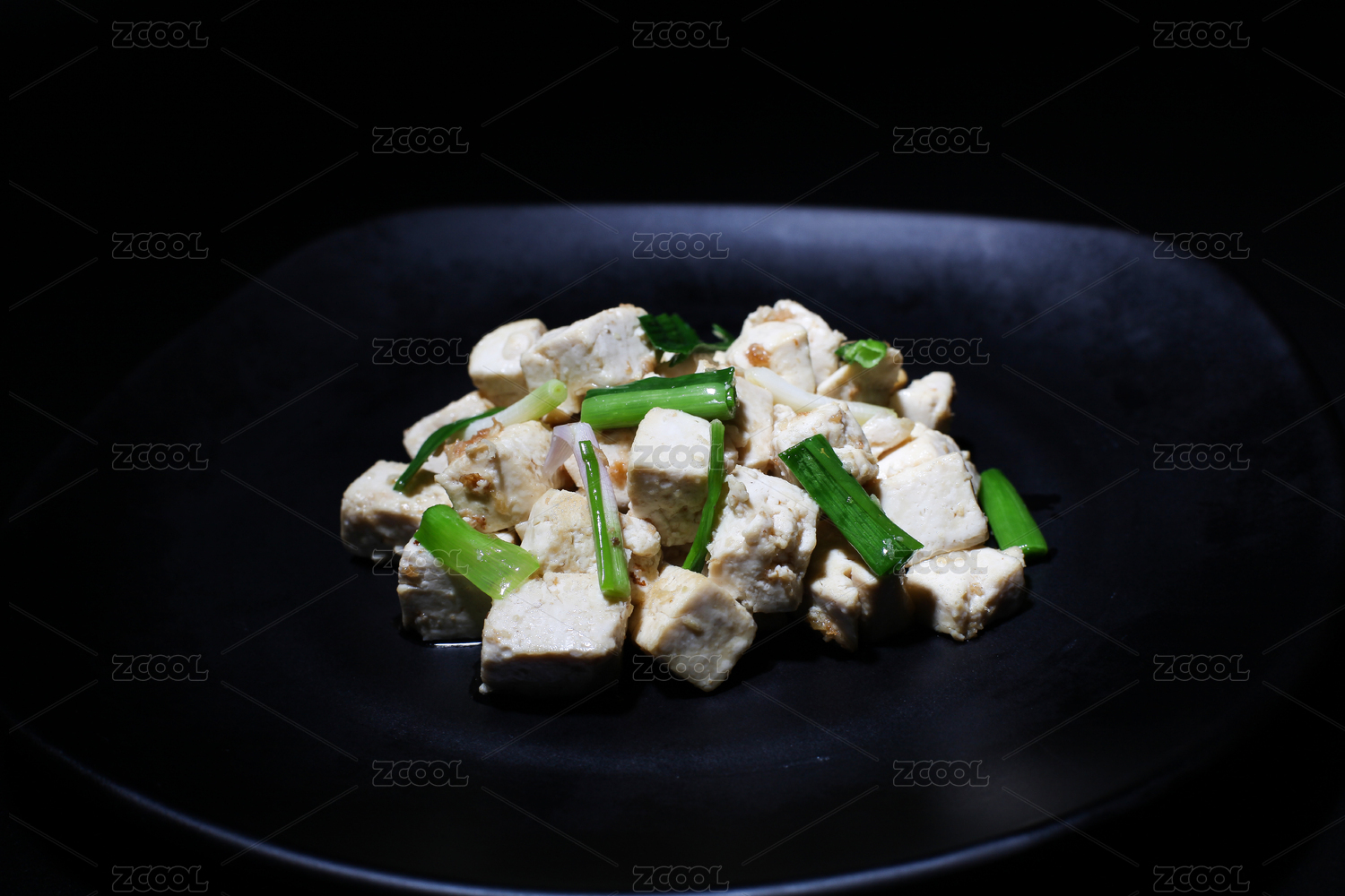 桌面上的盤子里的美味可口的小蔥拌豆腐