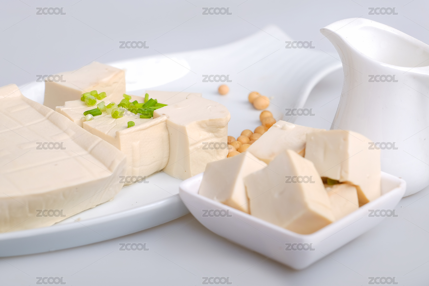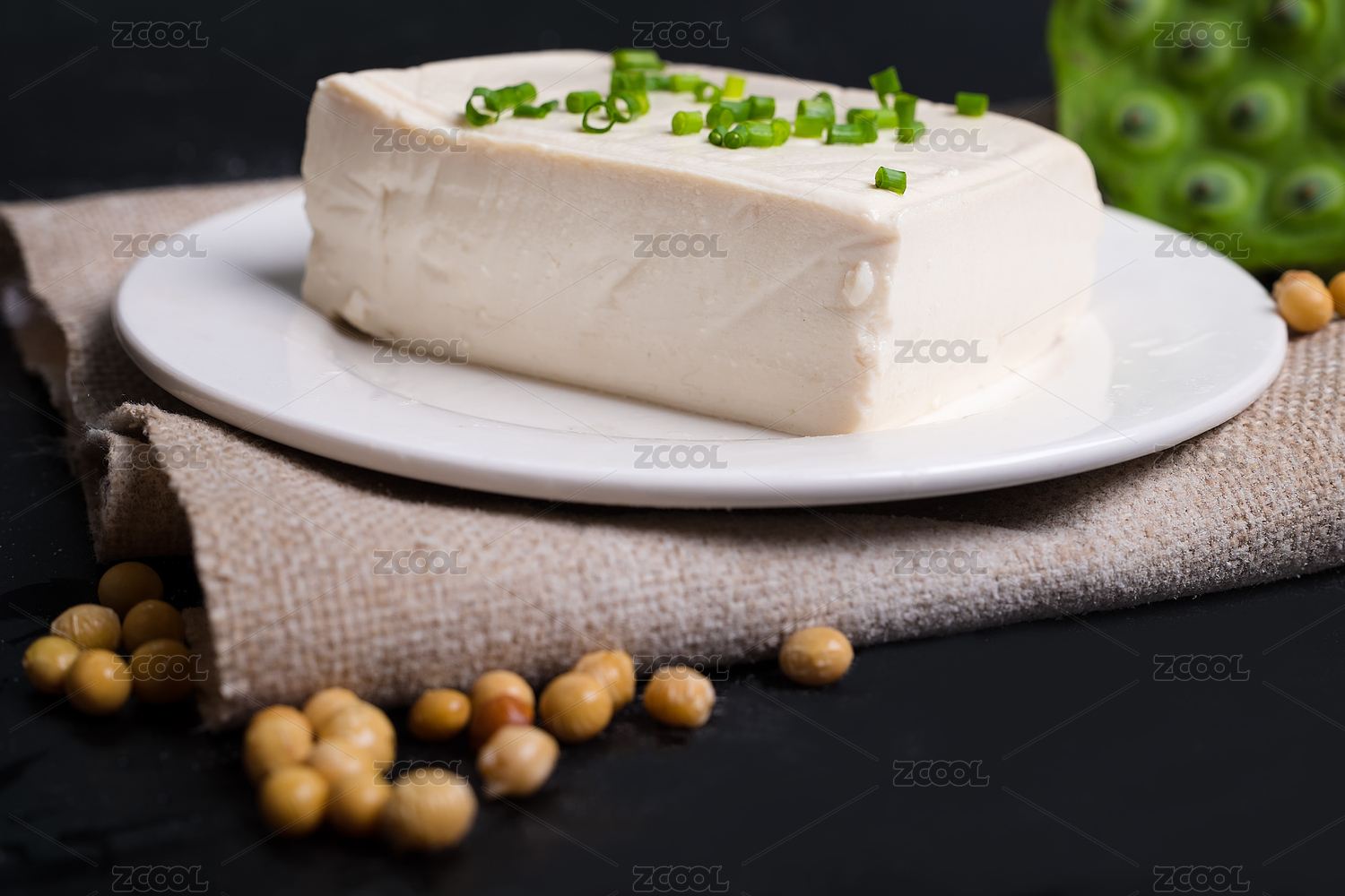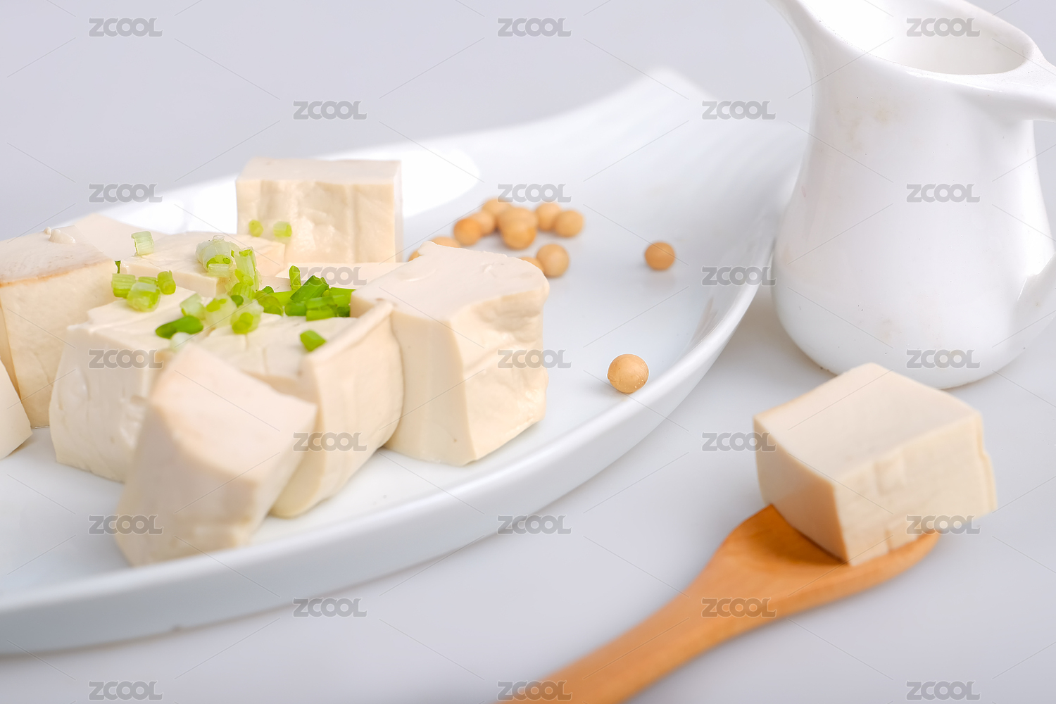 桌面上的盤子里的美味可口的小蔥拌豆腐