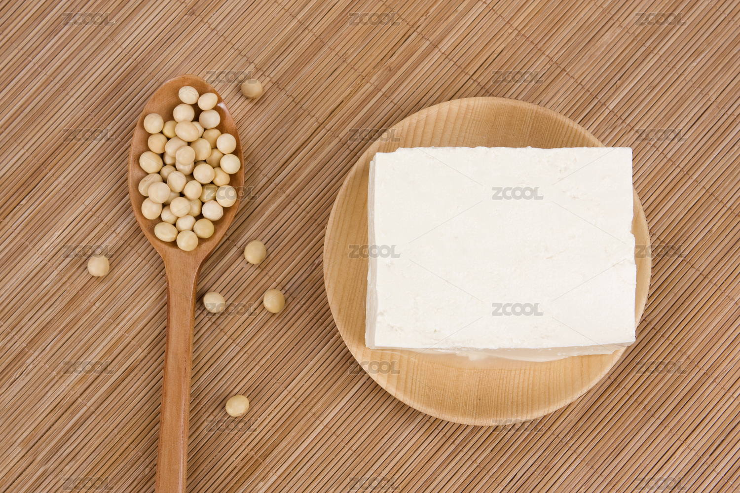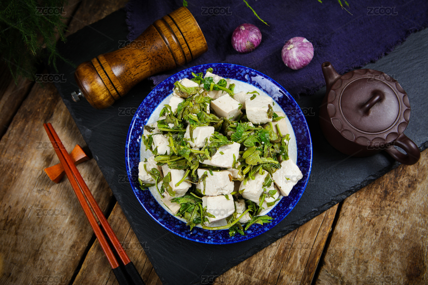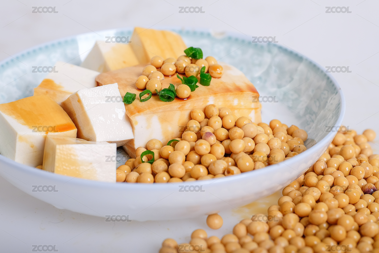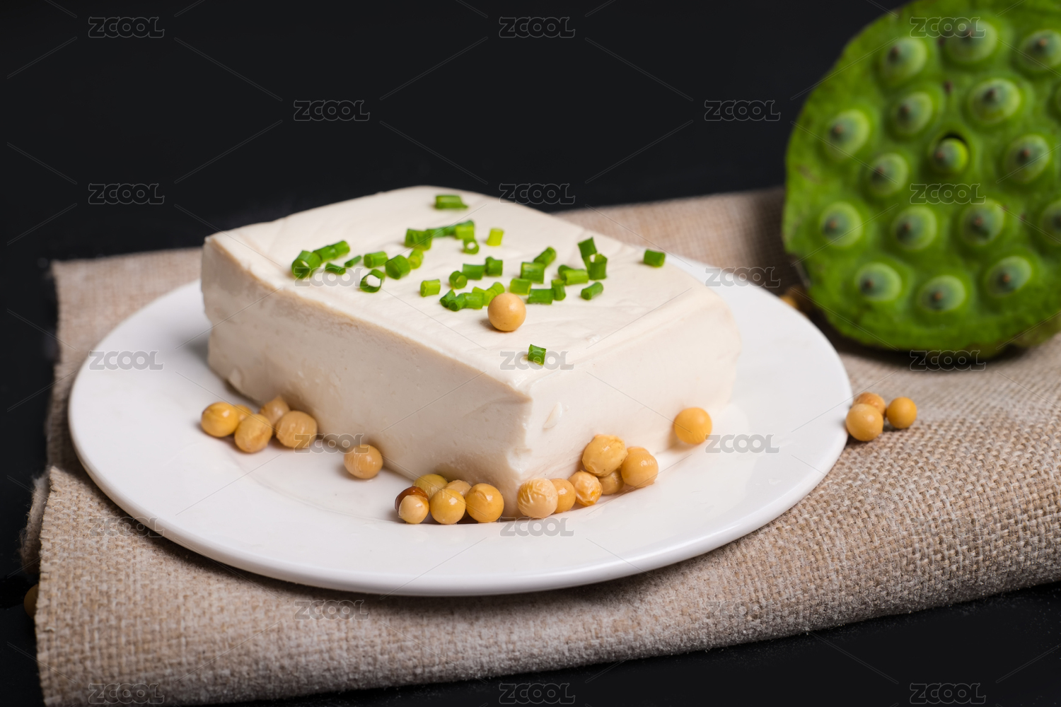 桌面上的盤子里的美味可口的小蔥拌豆腐
