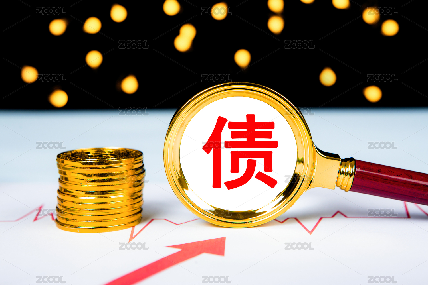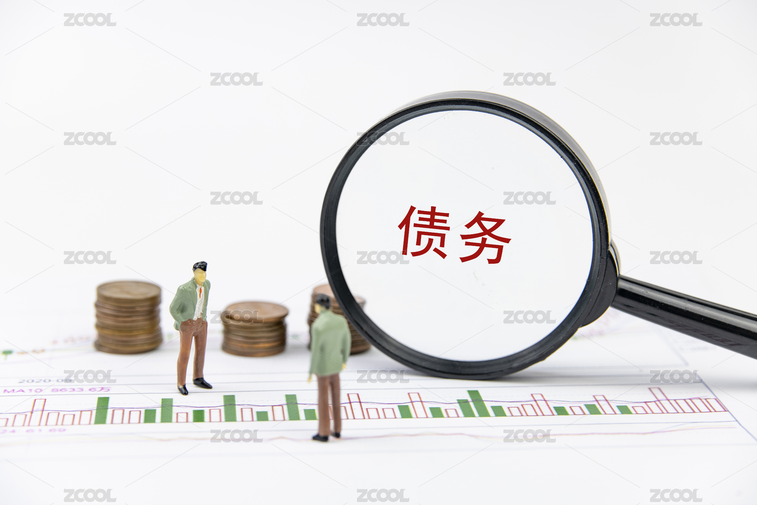 金融辦公用品上的放大鏡印著文字債務(wù)