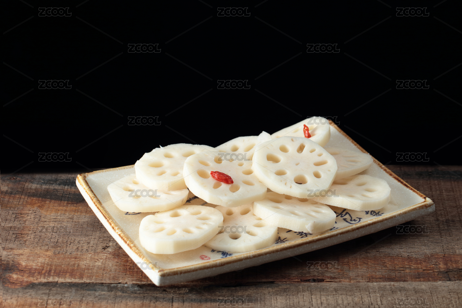 桌面上放著一盤藕片