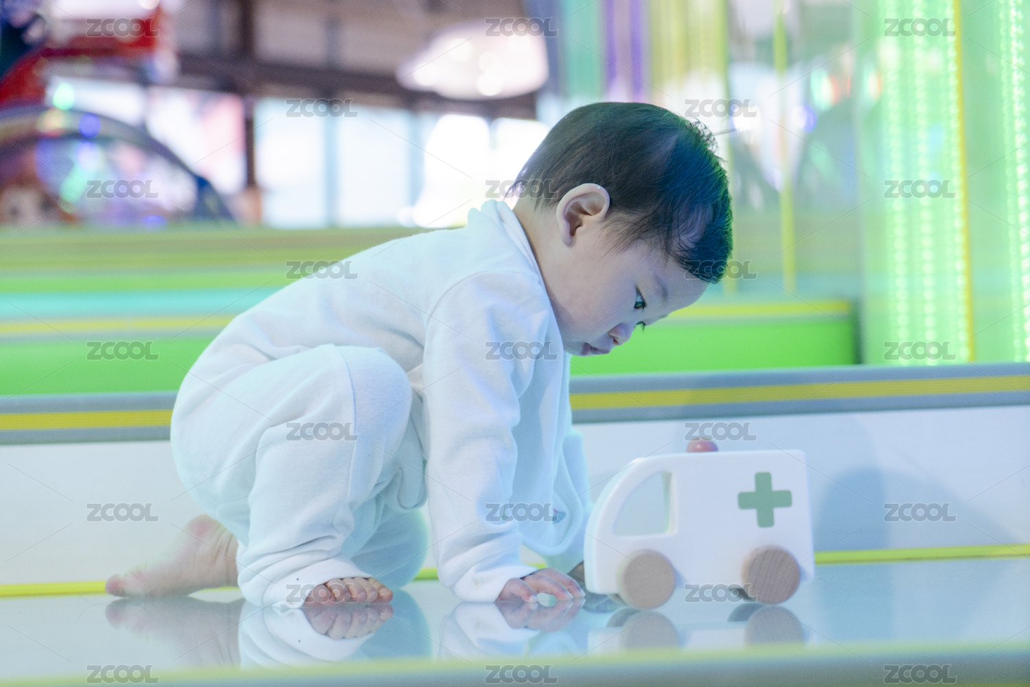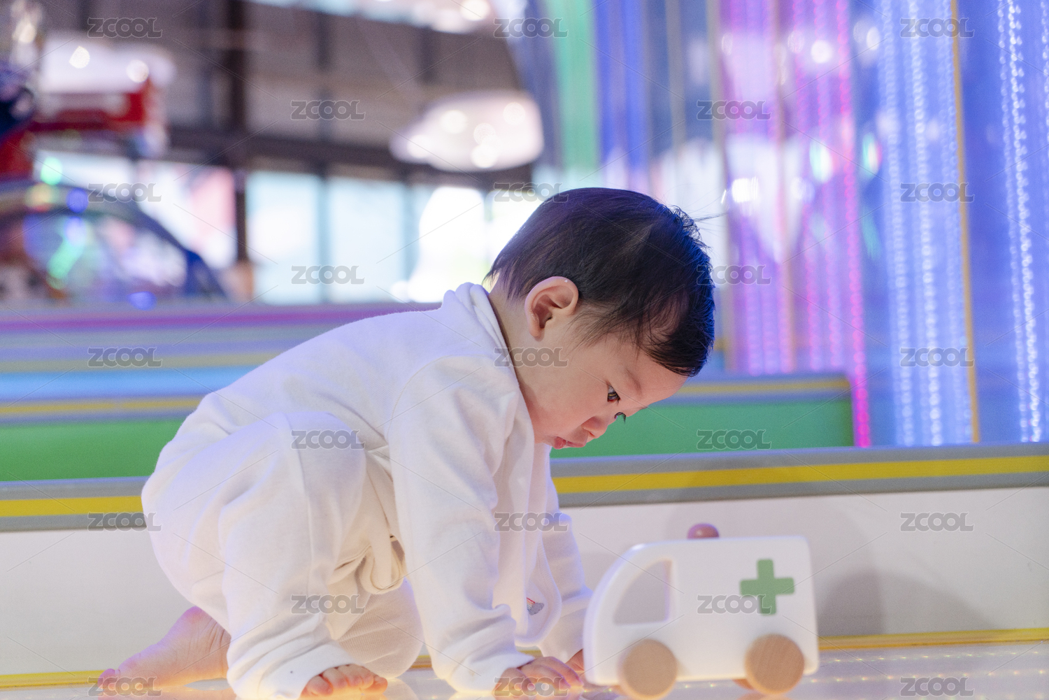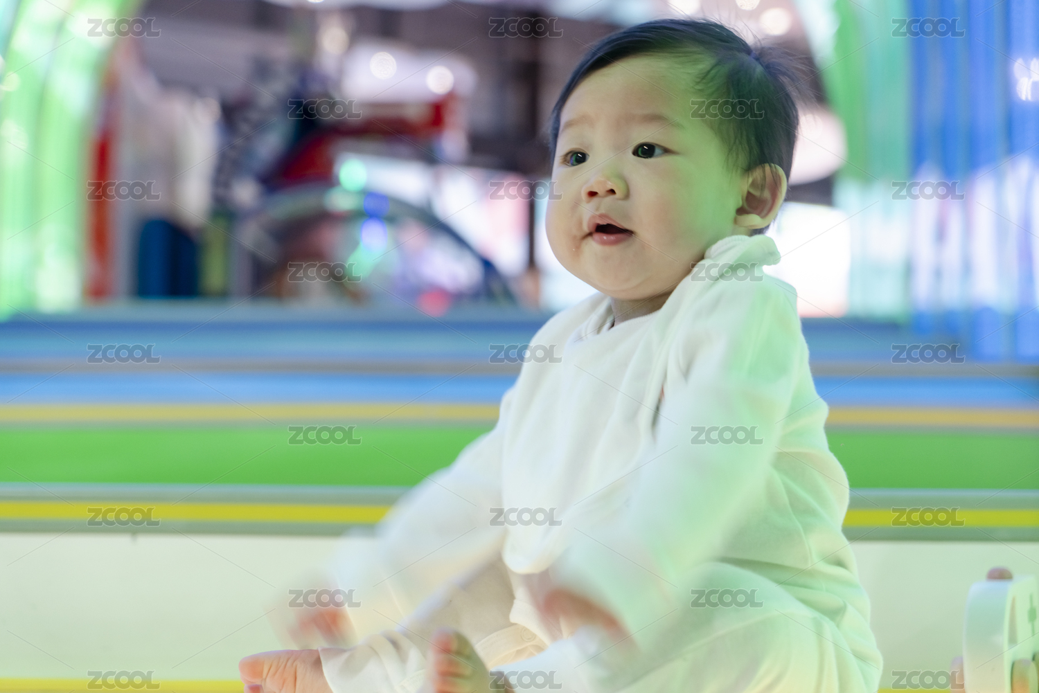 游樂(lè)場(chǎng)里嬰兒玩玩具車(chē)