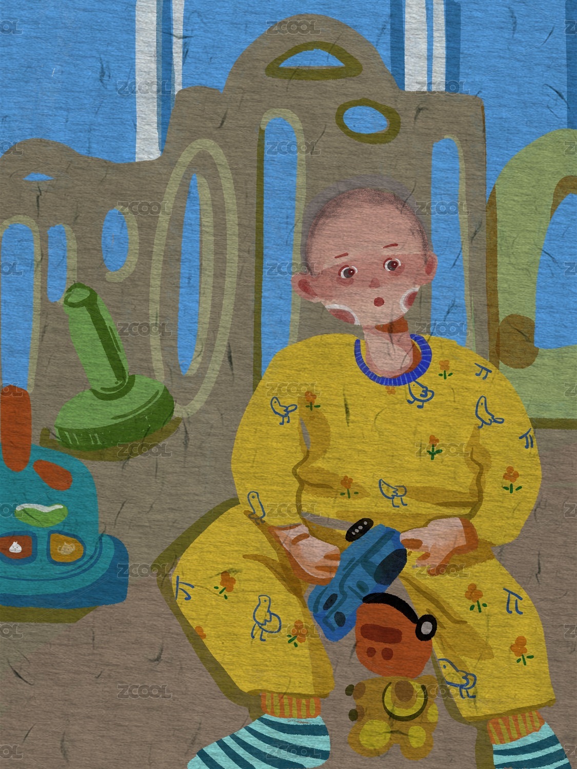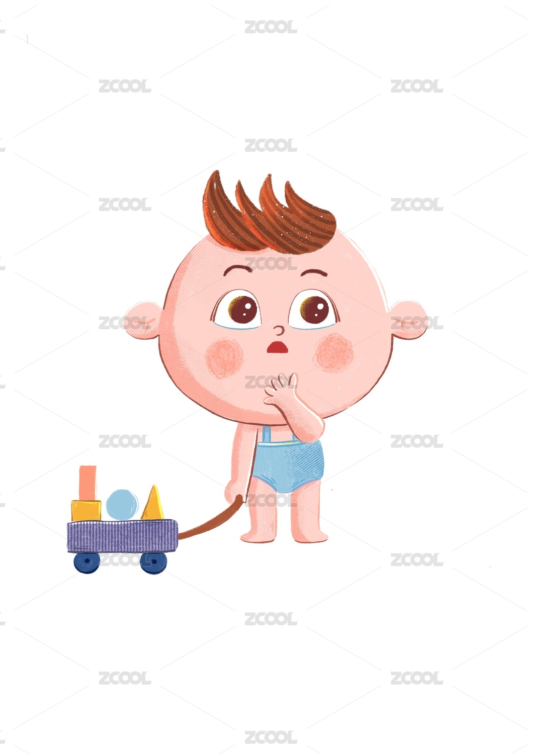 卡通風(fēng)男孩玩紅色卡車(chē)玩具車(chē)小朋友兒童插畫(huà)