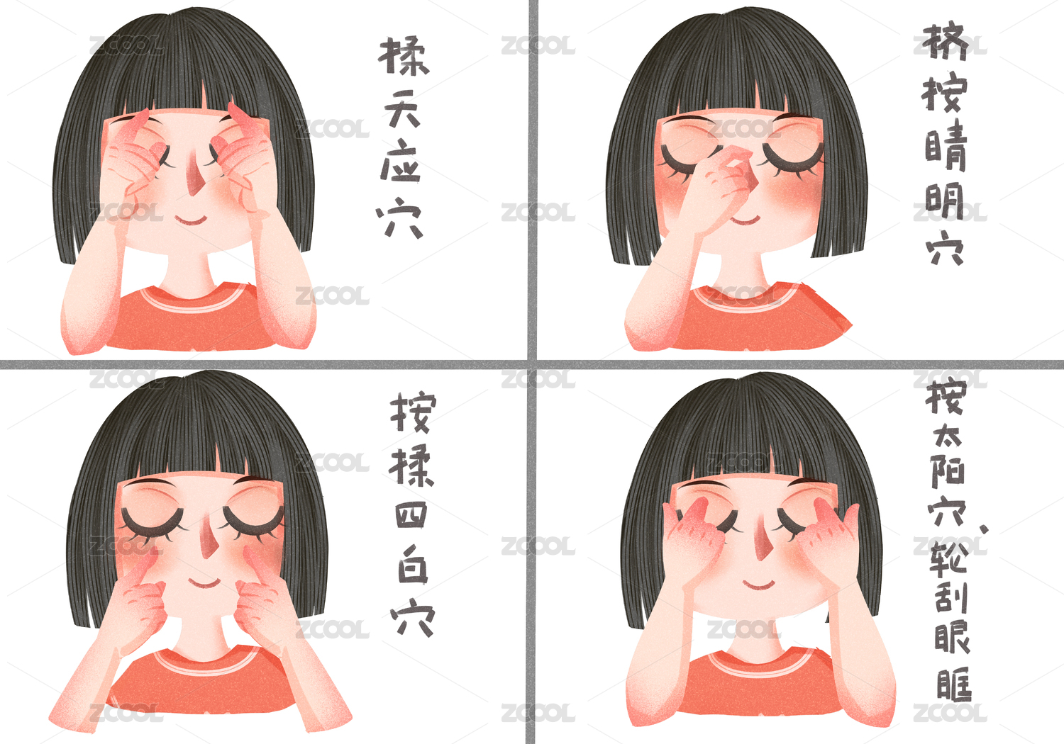 可愛風(fēng)格女孩做眼保健操插畫 世界愛眼日插畫