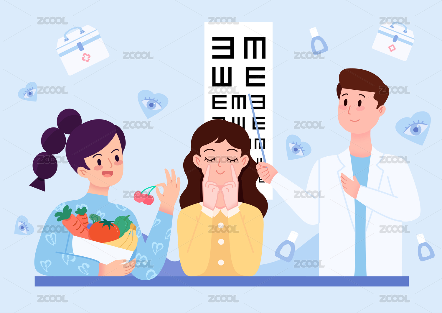 卡通愛護(hù)眼睛醫(yī)療醫(yī)生檢查視力世界愛眼日