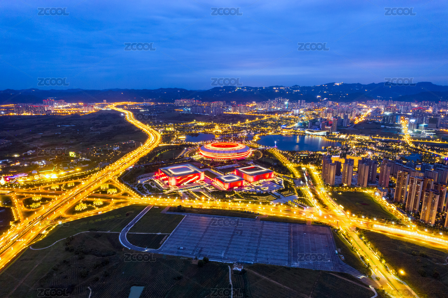 成都大運(yùn)會主場館和東安湖體育公園夜景航拍