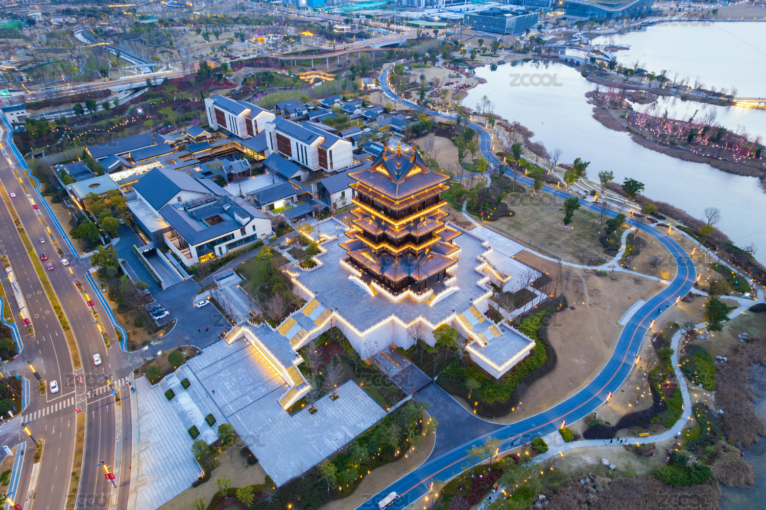 成都大運(yùn)會世運(yùn)會東安湖體育公園東安閣夜景