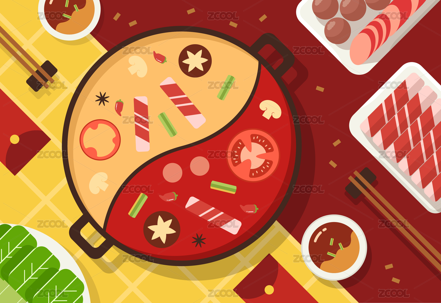 國潮風(fēng)火鍋宴席插畫