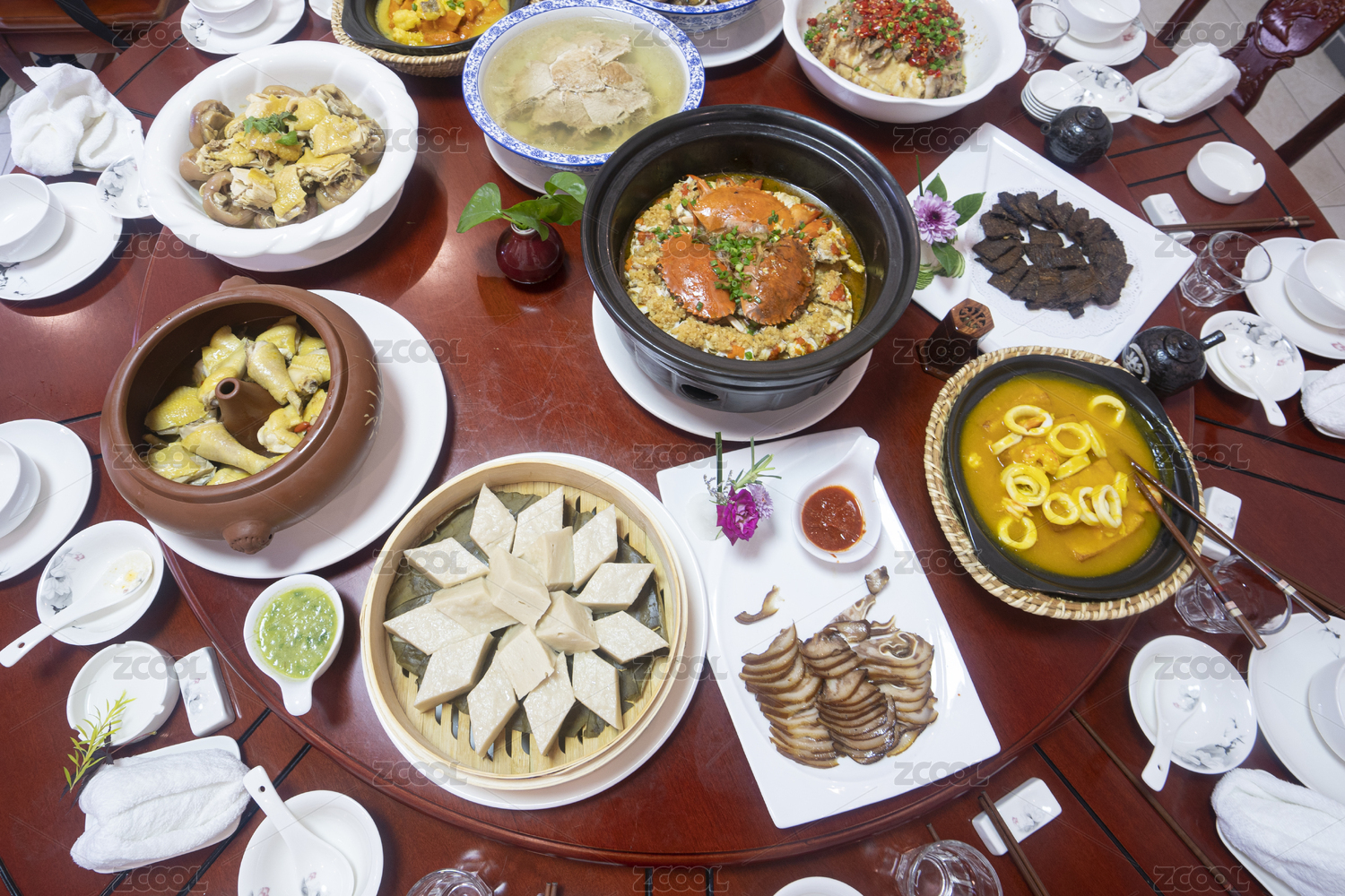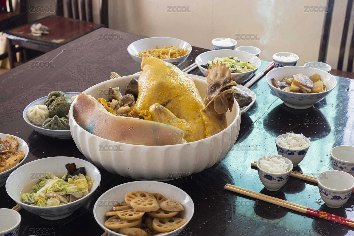 豐盛的雞湯宴席