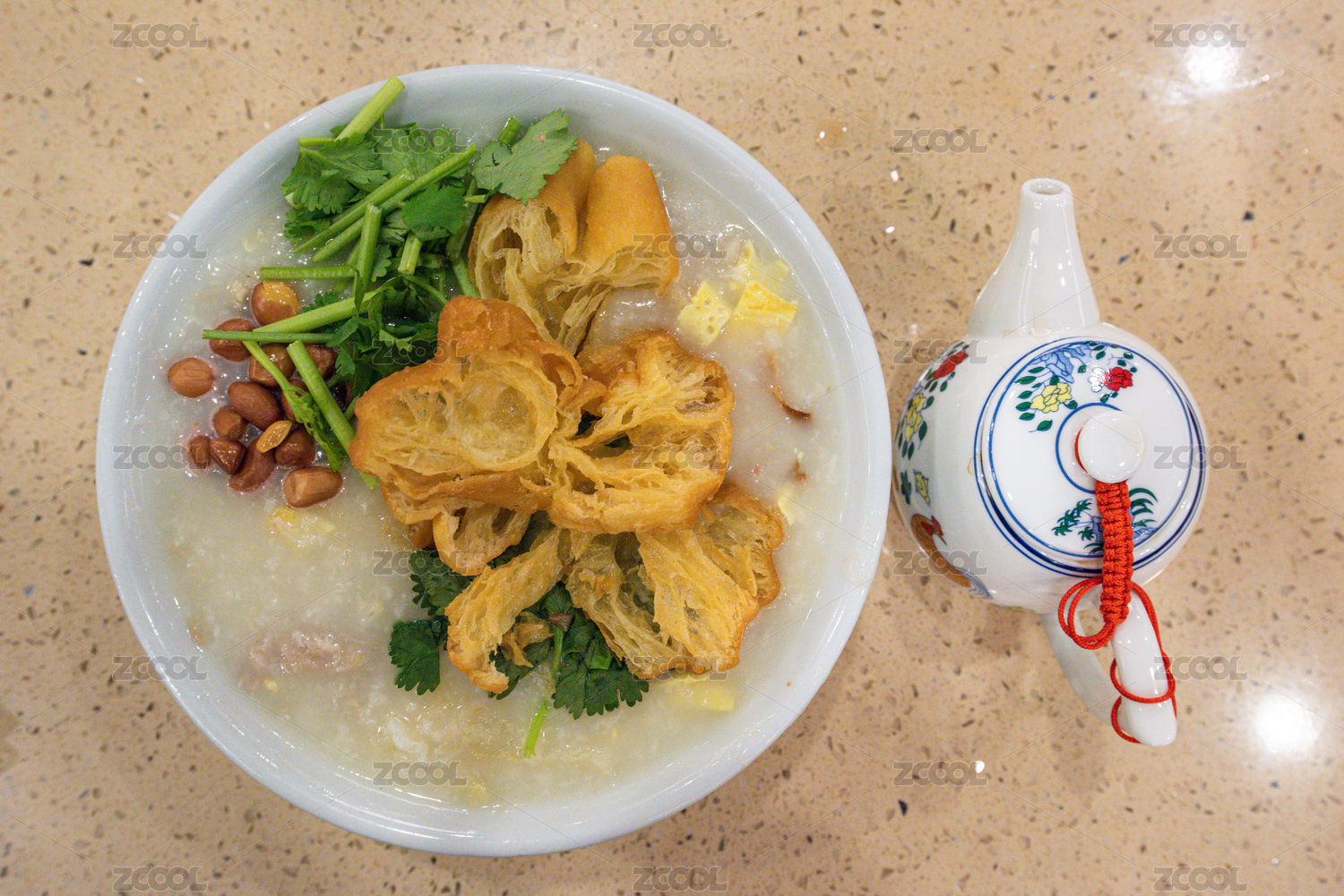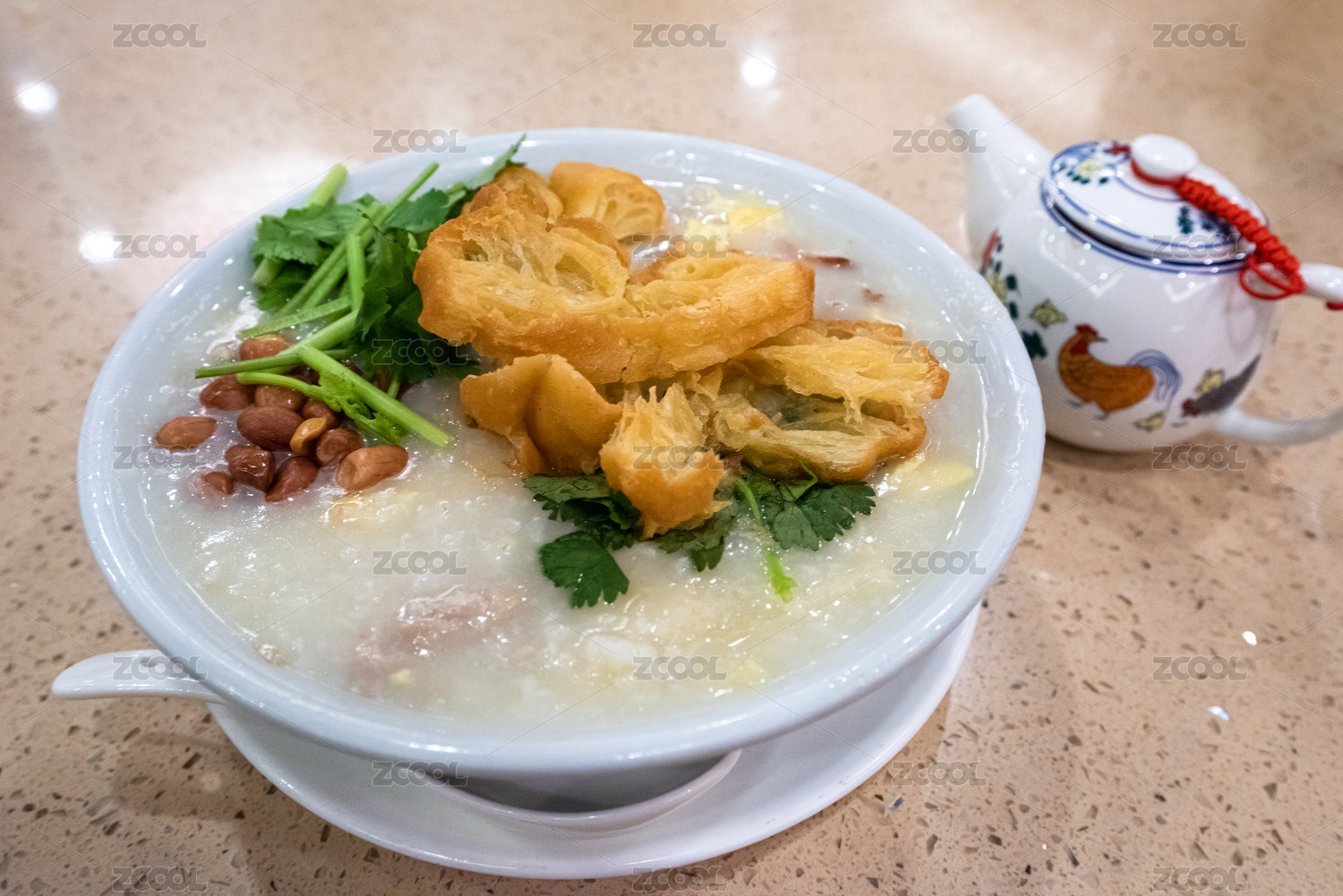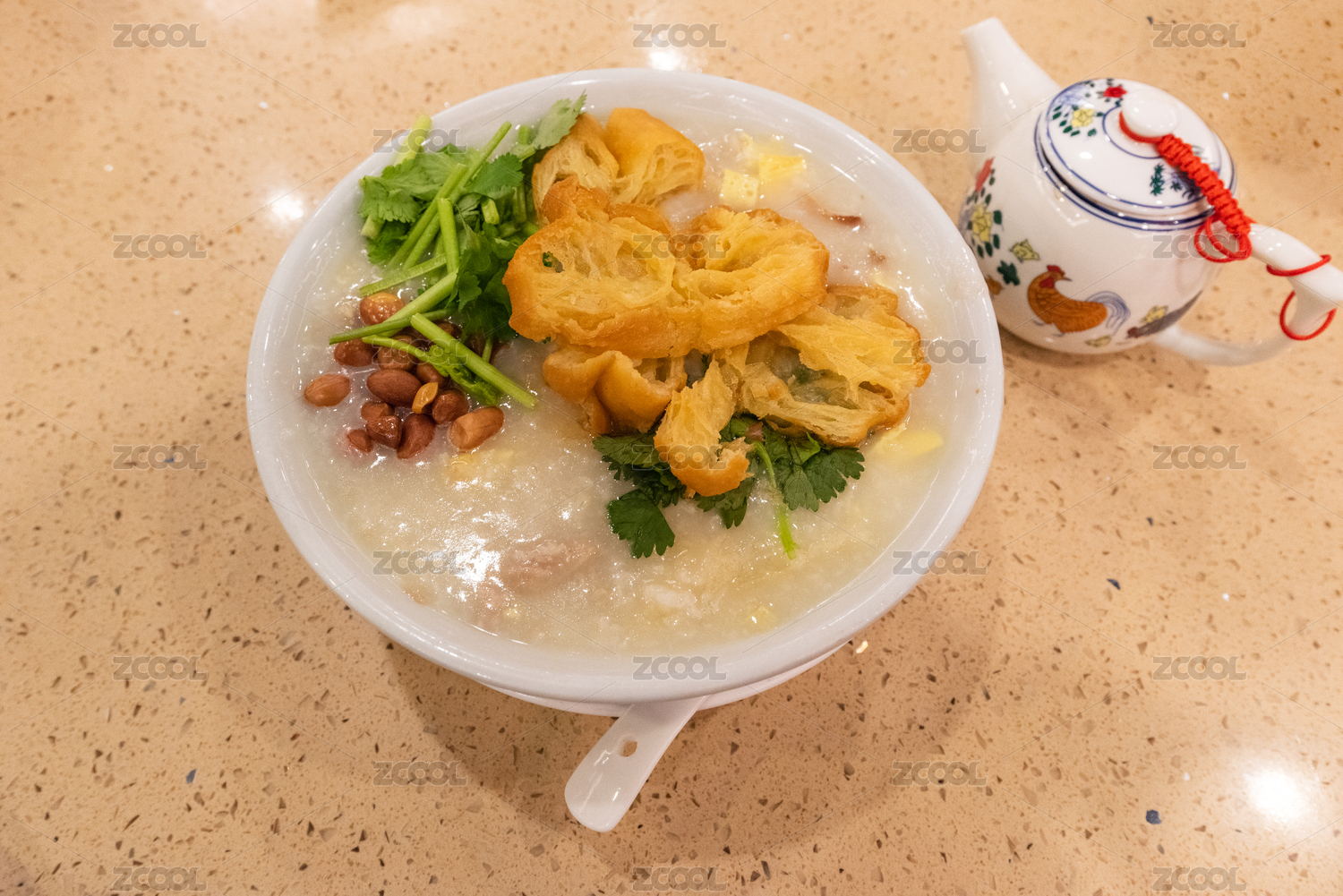 一份傳統(tǒng)美味的廣式早茶主食,艇仔粥