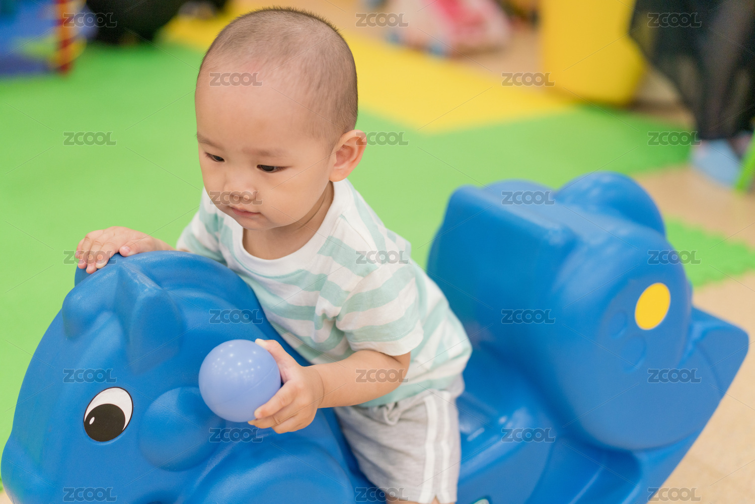 亞裔男孩在早教機(jī)構(gòu)內(nèi)玩耍