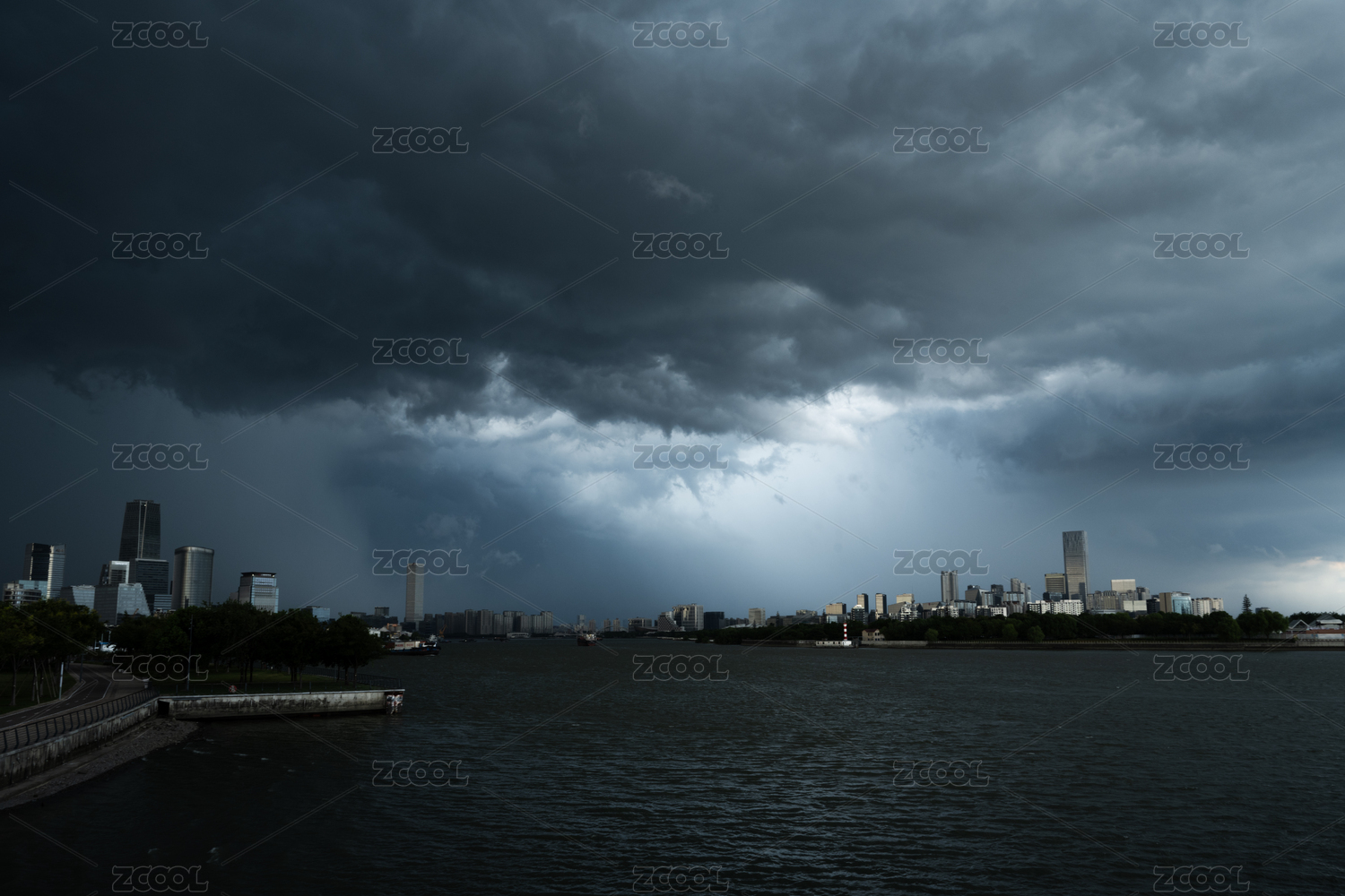 中國上海陸家嘴城市風(fēng)暴航拍