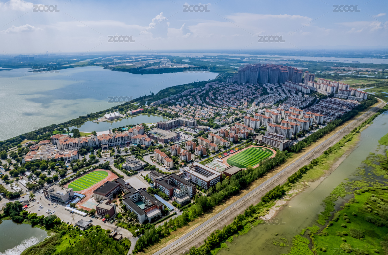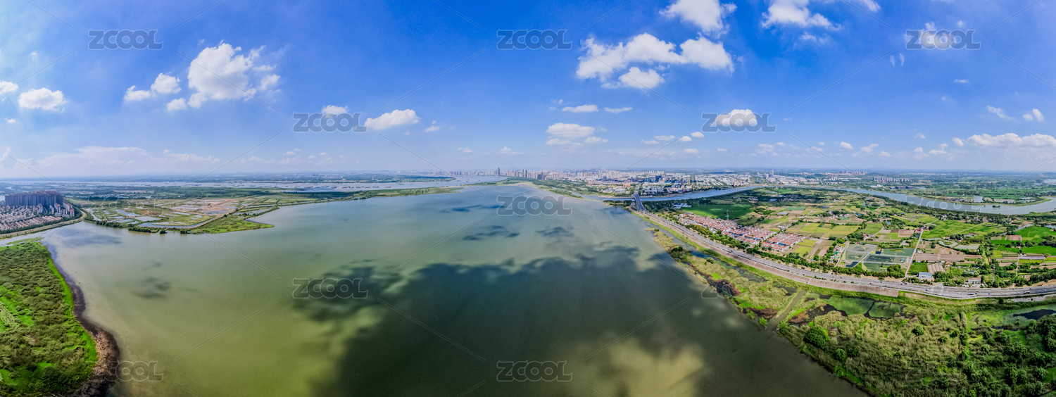 安徽蕪湖城市天際線漳河龍窩湖濕地公園航拍