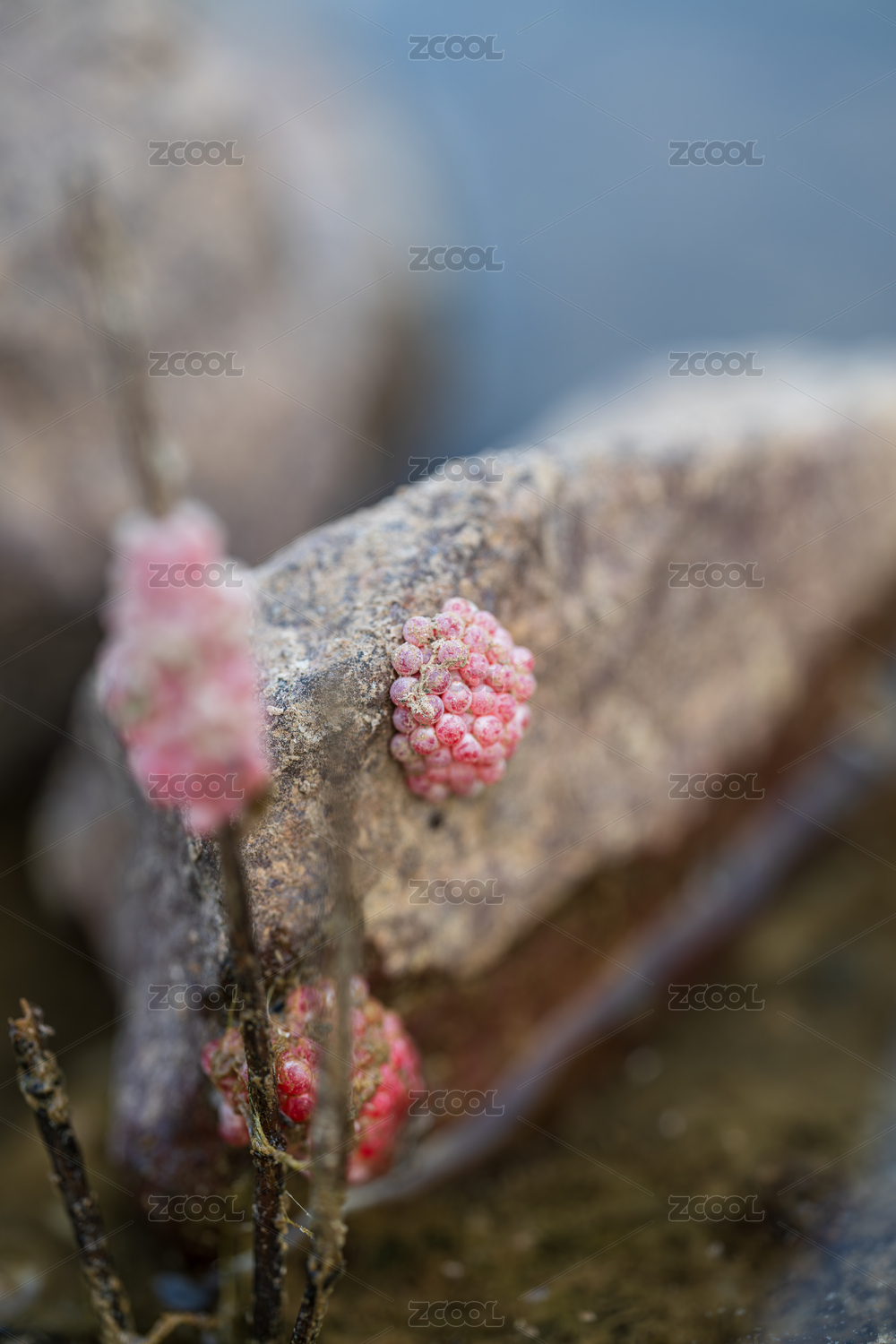 夏季公園湖邊的福壽螺卵