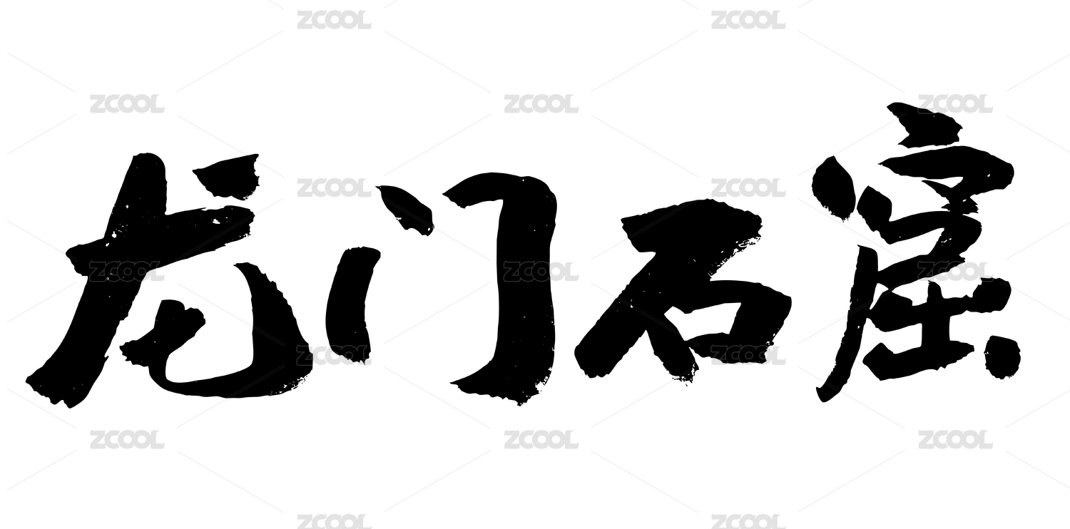 中國(guó)風(fēng)傳統(tǒng)毛筆藝術(shù)書(shū)法字龍門(mén)石窟