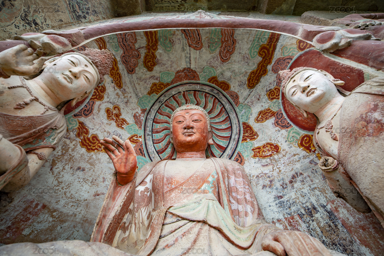 中國(guó)甘肅麥積山石窟風(fēng)景