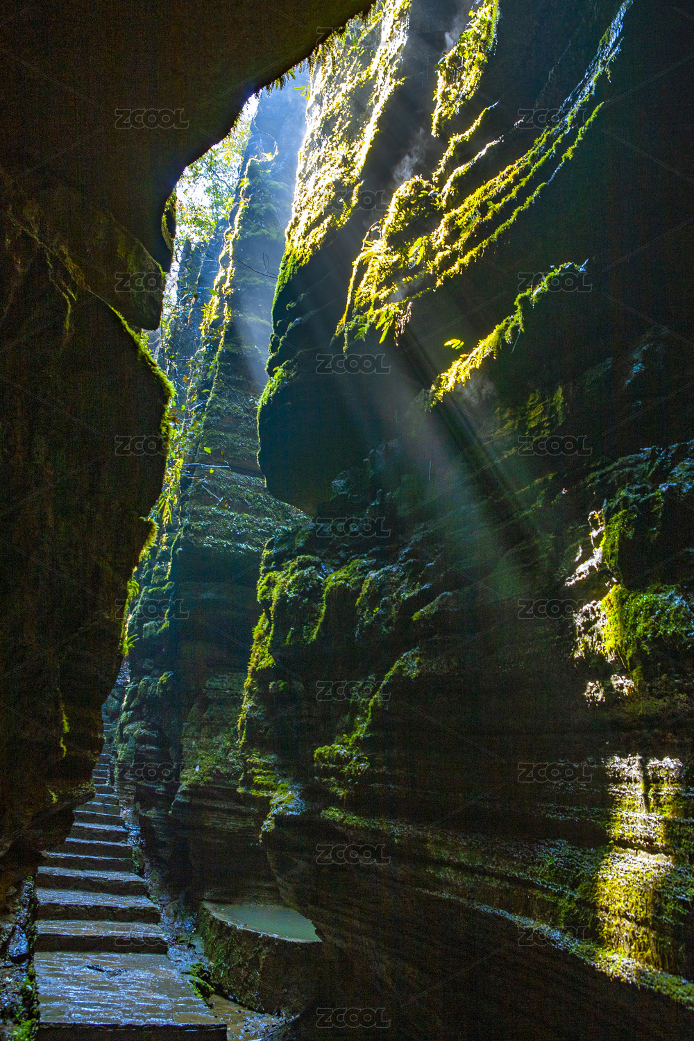 中國(guó)湖北恩施的梭布埡石林景區(qū)的峽谷石窟風(fēng)光