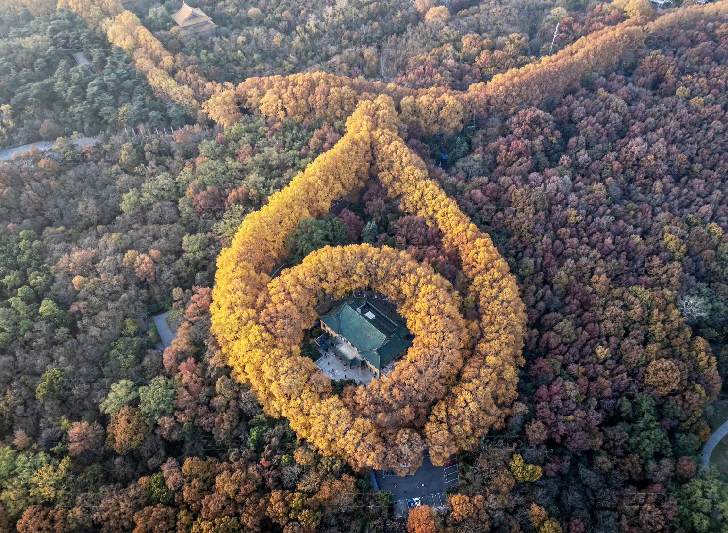 航拍中國江蘇南京鐘山風(fēng)景名勝區(qū)美齡宮深秋美景