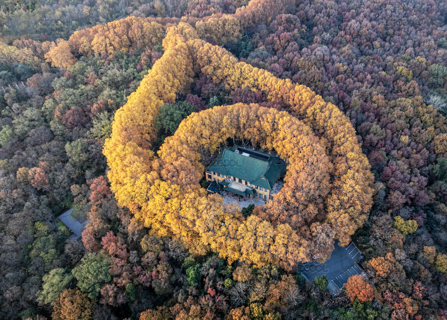 南京鐘山風(fēng)景區(qū)美齡宮秋景航拍