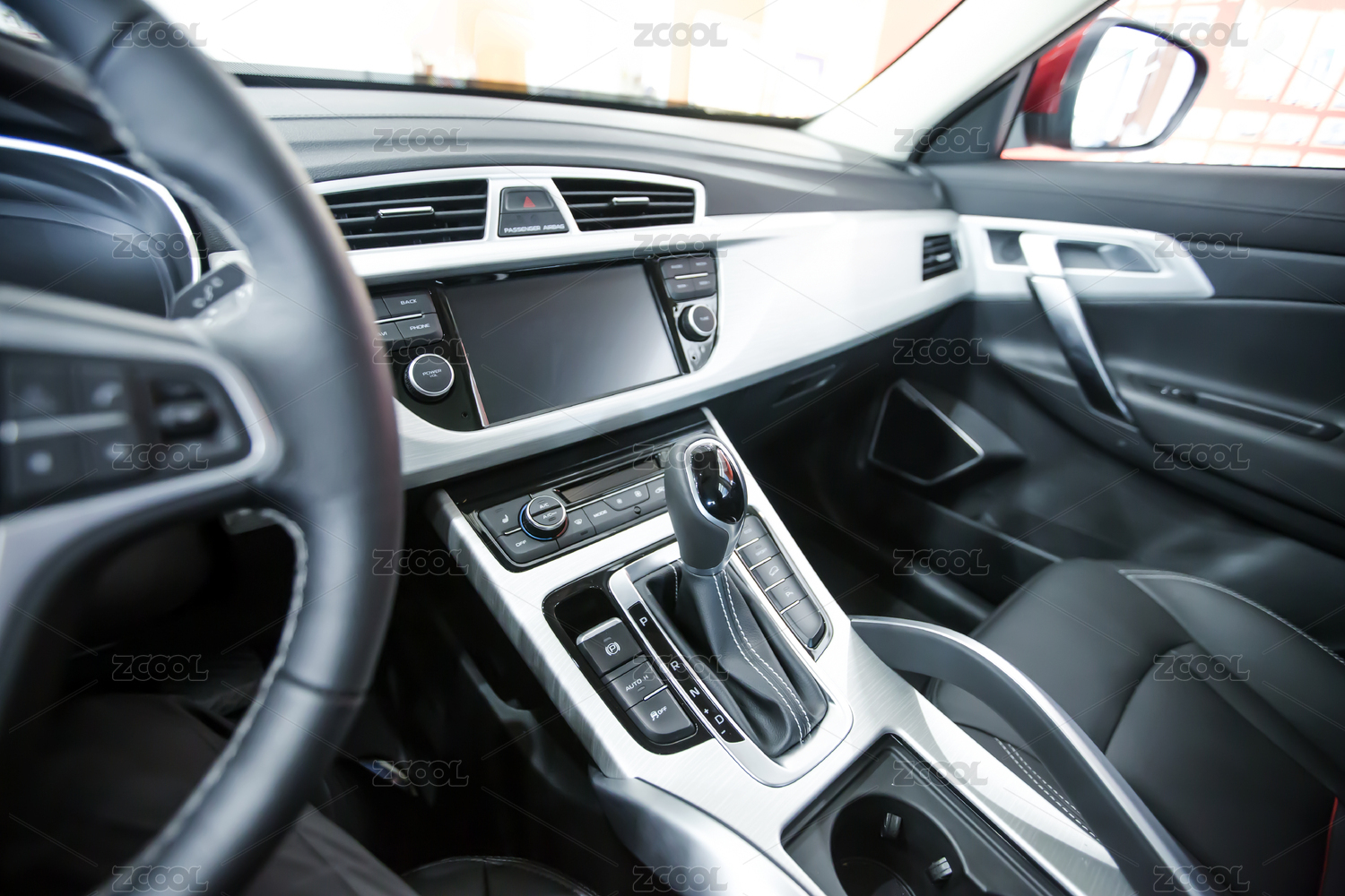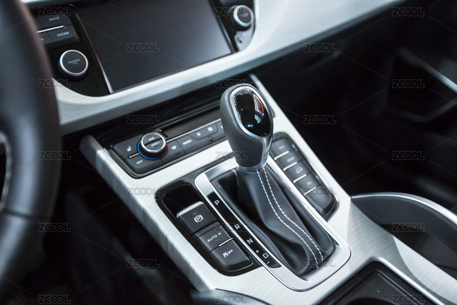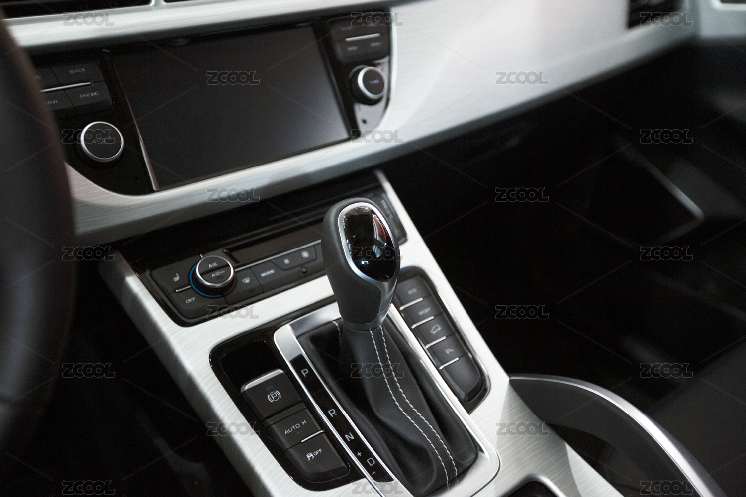 家用豪華自動擋汽車中控臺內(nèi)飾特寫