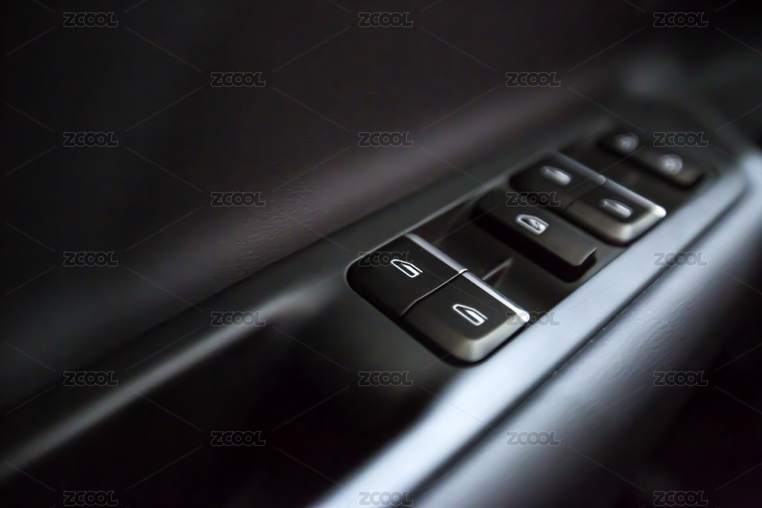 家用豪華汽車車門內(nèi)飾操作按鈕特寫