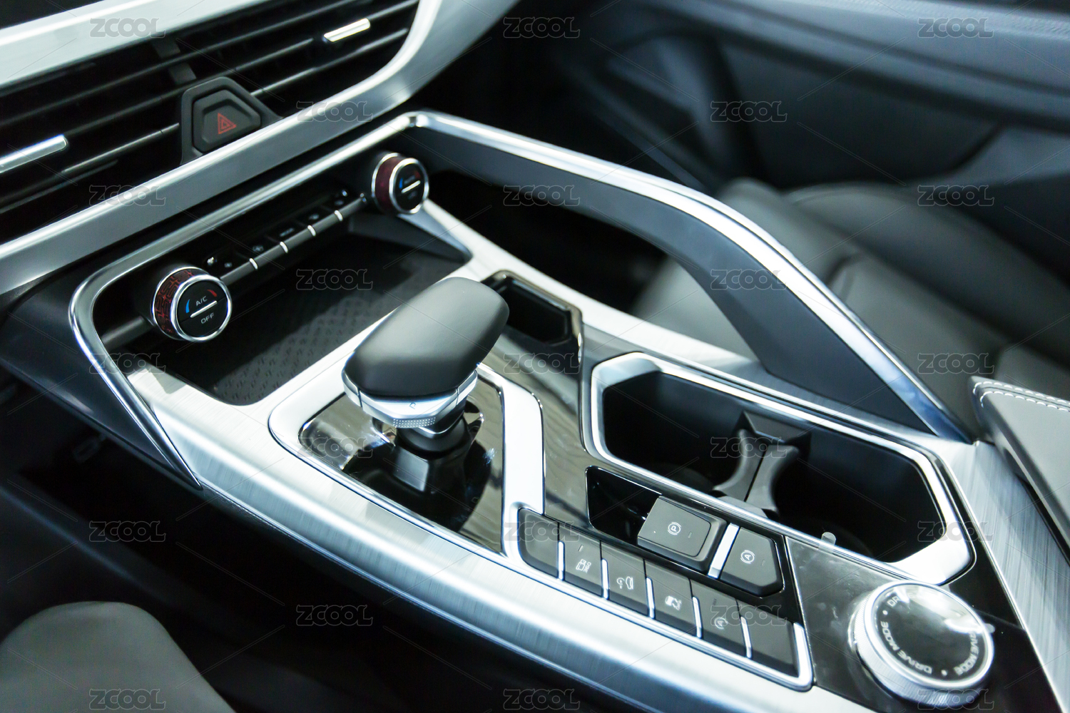 家用豪華小轎車中控臺空調(diào)開關內(nèi)飾特寫