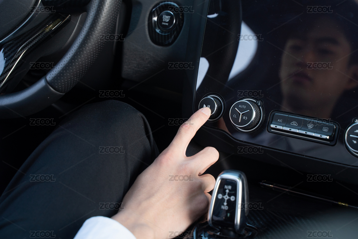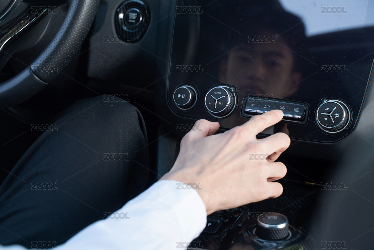 年輕的豪華車專業(yè)司機,調(diào)節(jié)內(nèi)飾操作特寫