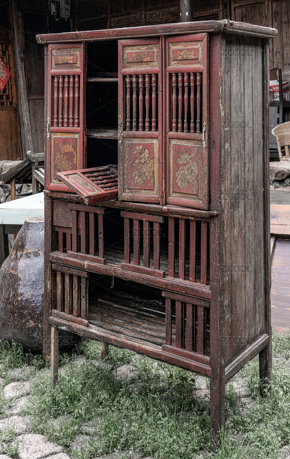 從窗戶(hù)門(mén)框外看室內(nèi)書(shū)房臥室里的空柜子