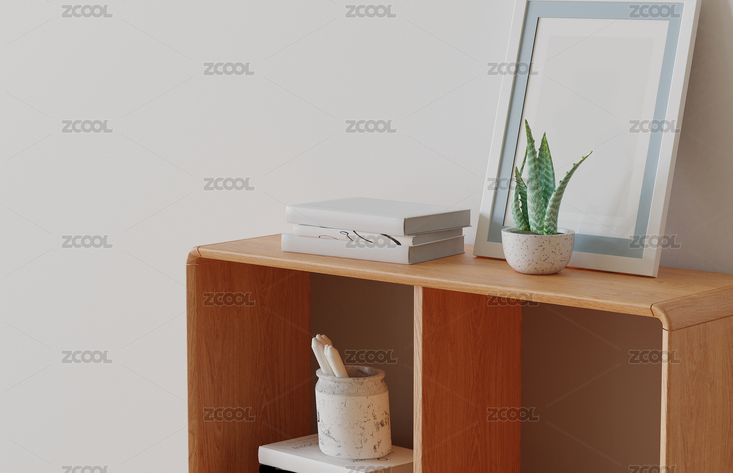 擺放書(shū)本與綠植畫(huà)框的柜子