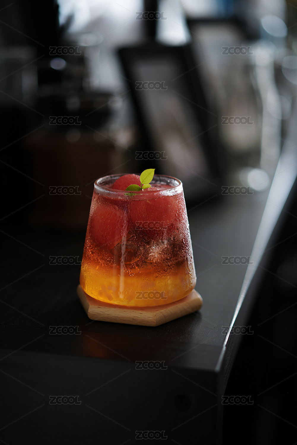 暗調(diào)下的西瓜果凍起泡酒冷飲