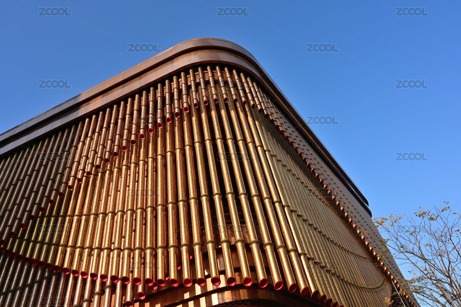 現(xiàn)代建筑創(chuàng)意金色動感外墻裝飾特寫