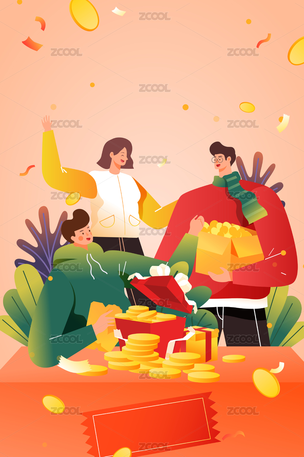 卡通收益紅包年終獎金融概念背景矢量插畫